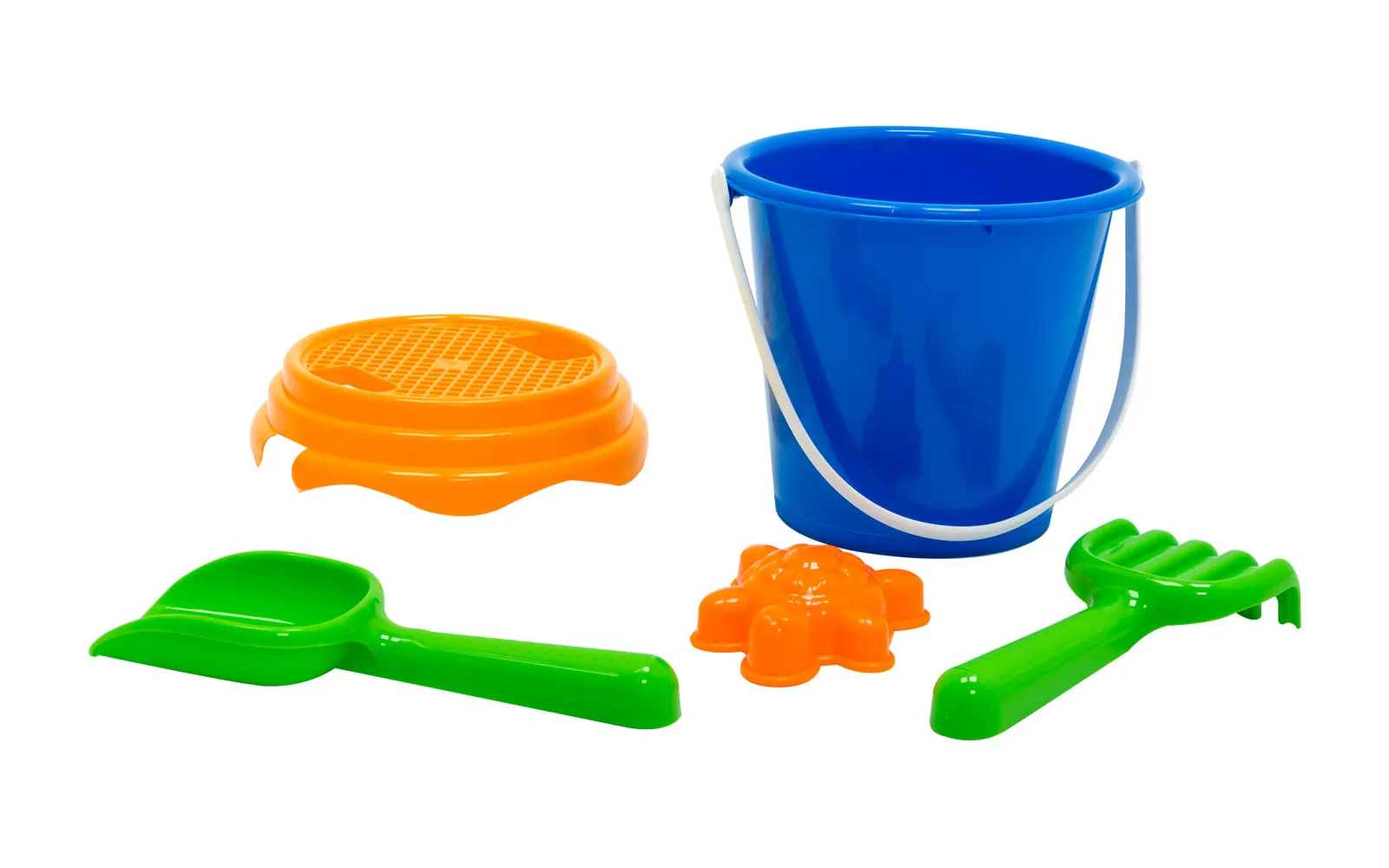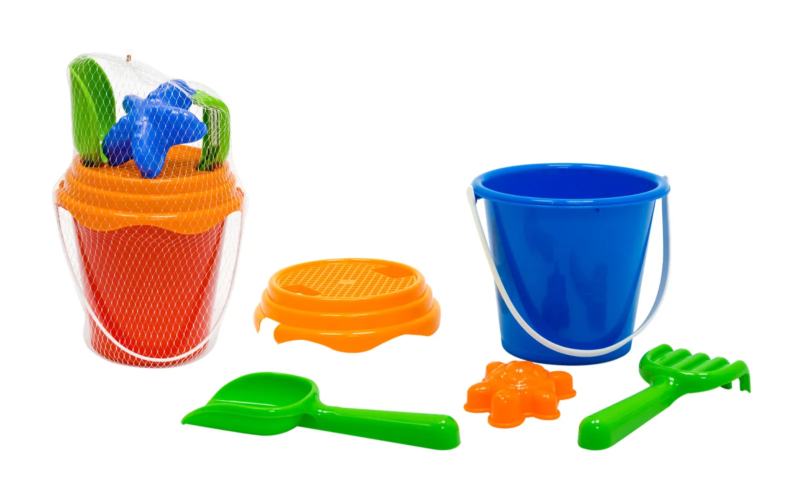 Raznovrstni komplet je odličan za igranje u pijesku! Sadrži kanticu promjera 14 cm, lopaticu, grabljice i modele za otiske. Dostupan je u crvenoj ili plavoj boji.