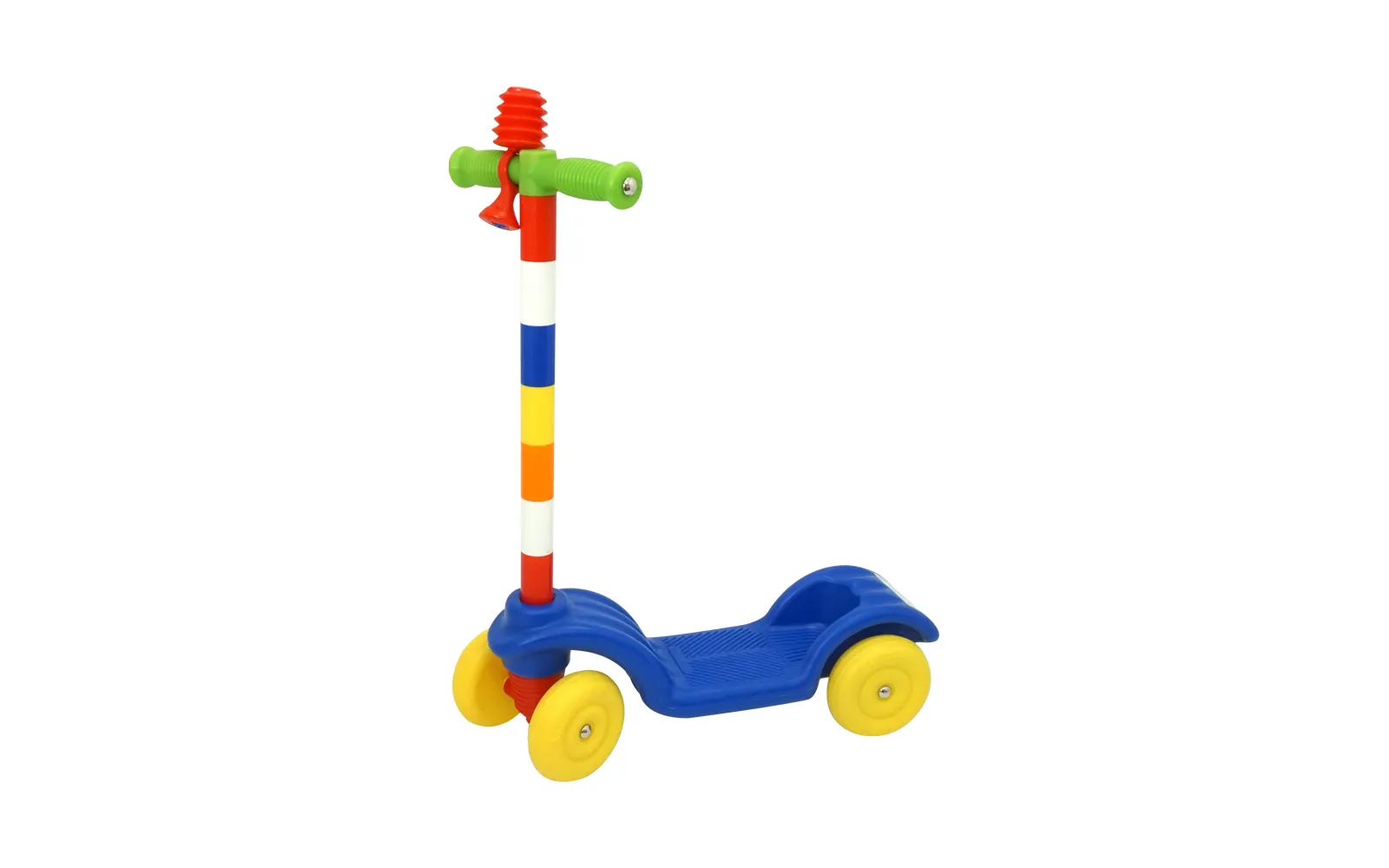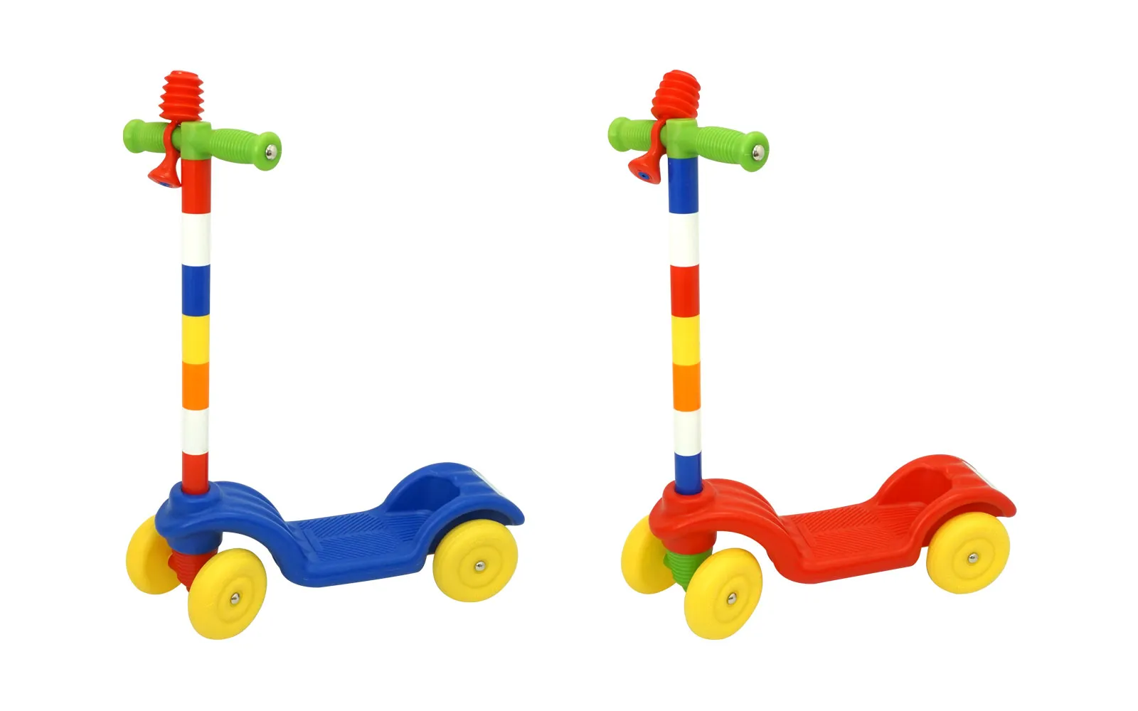 Uživaj u vožnji simpatičnog romobila sa žutim kotačićima i trubicom. Romobil ima 4 kotačića zato je vrlo stabilan i siguran za vožnju. Maksimalna težina: 20 kg.