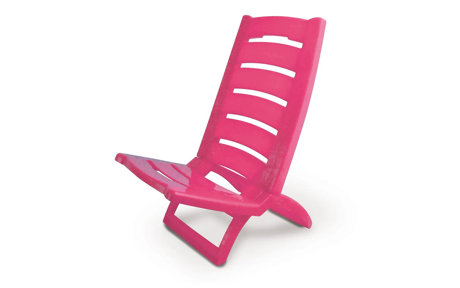 Koristan sklopivi pvc stolac magenta-roza boje, s nosivošću do 100 kg za sjedenje na toplom suncu ili u ugodnoj sjeni, kada sunce previše jarko sja. Dimenzije sastavljenog stolca: duljina: 37,5, visina: 65 cm, dubina: 55 cm i visina od tla: 27 cm. Proizvedeno u Italiji. Catas testirano.