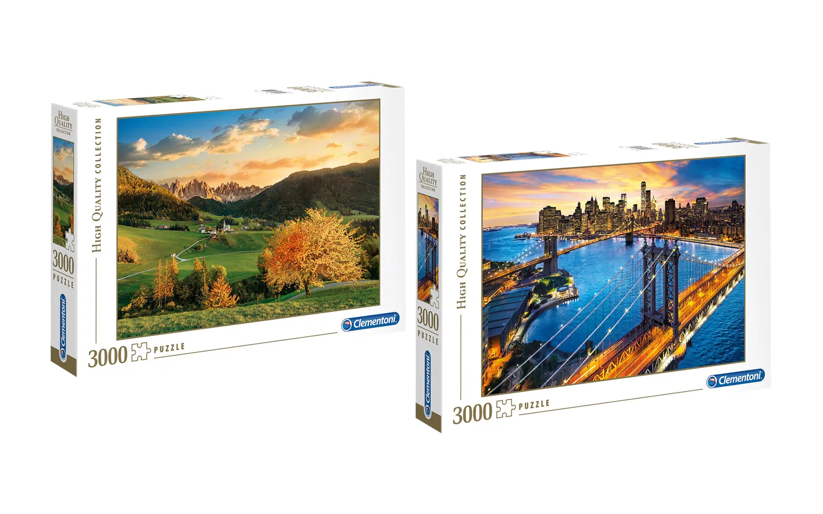 Puzzle sa 3000 komada raznovrsnih motiva - pejzaž, putovanje, fantazija, umjetnost, izrađena od visokokvalitetnih materijala, očaravajućih slika, kvalitetnog tiska, precizno rezanih rubova i čvrstih materijala, koji slici daju jasan izgled. Clementoni koristi reciklirane materijale i izbjegava upotrebu komponenti koje zagađuju okoliš.