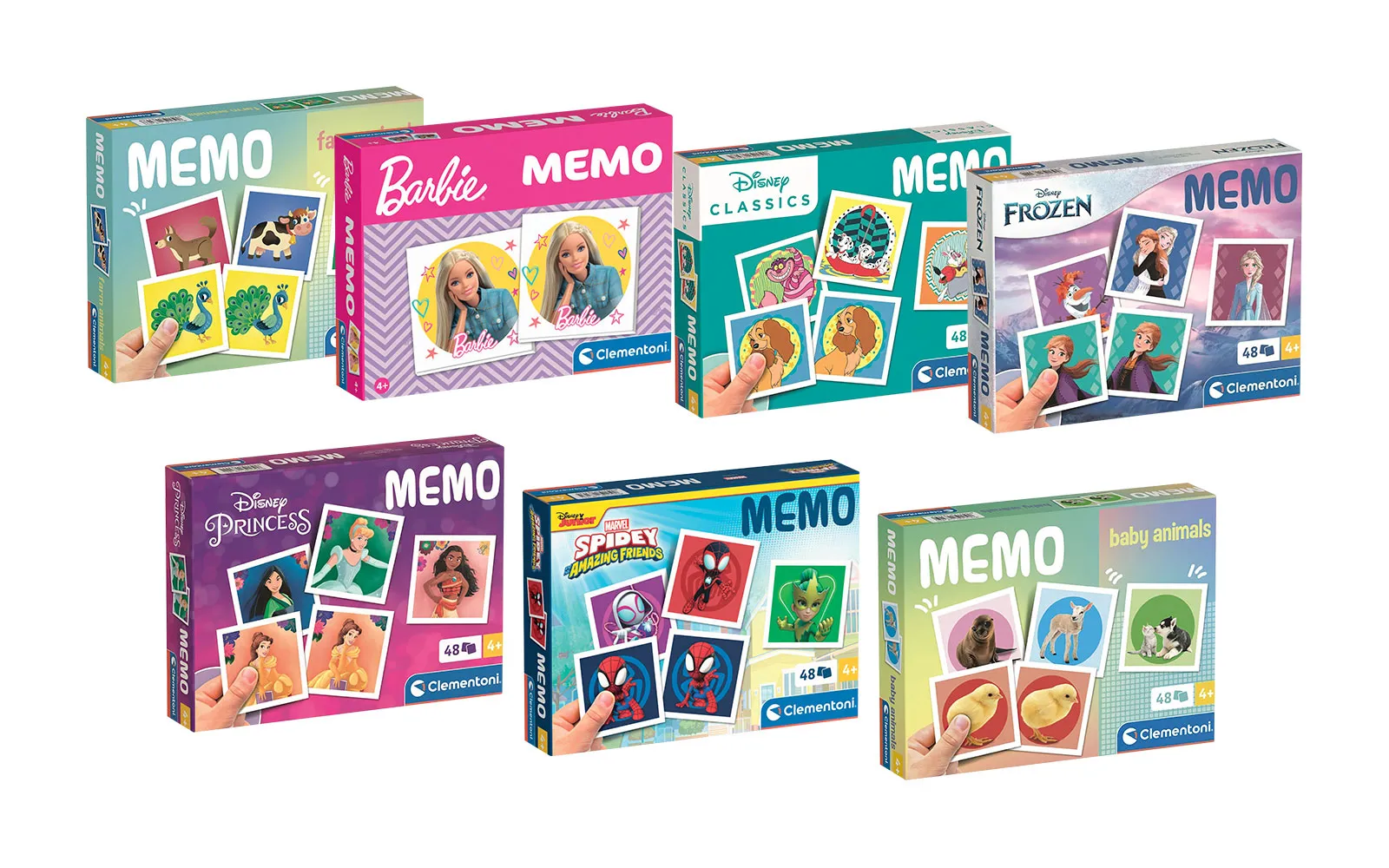 Razvijajte svoje pamćenje s igrom Memo koja ima 24 para kartica s različitim motivima: Puppies, Farm animals, National Geographic, Unicorn, 44 Cats, Princess i Cars. Igranjem dijete razvija svoje pamćenje i koncentarciju. Artikl je namijenjen djeci u dobi od 4 godine nadalje.