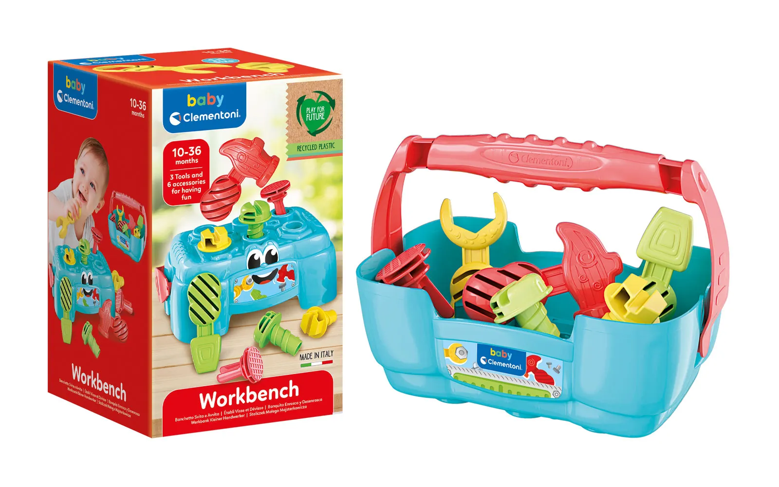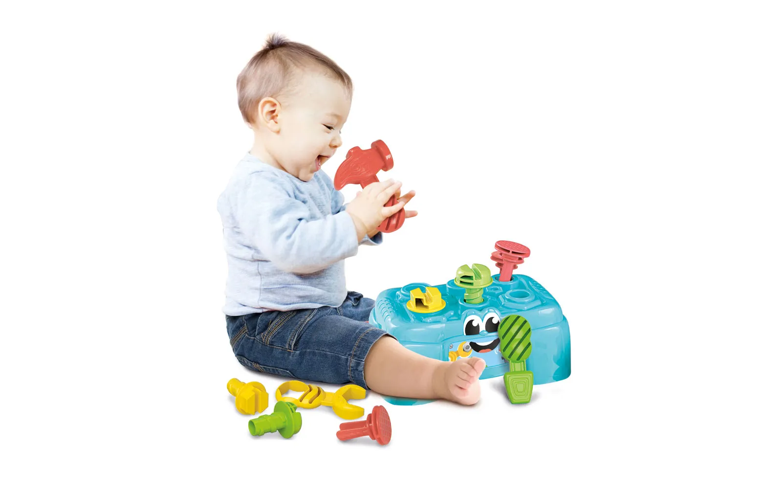 Plavi stolić s alatom je odlična igračka za vašeg mališana. U njega dijete može slagati alat, a služi i kao kućište za čuvanje alata. Igrajući se ovom igračkom, dijete će razvijati senzoričke, motoričke i kognitivne sposobnosti. Igračka je namijenjena djeci u dobi od 10 do 36 mjeseci.