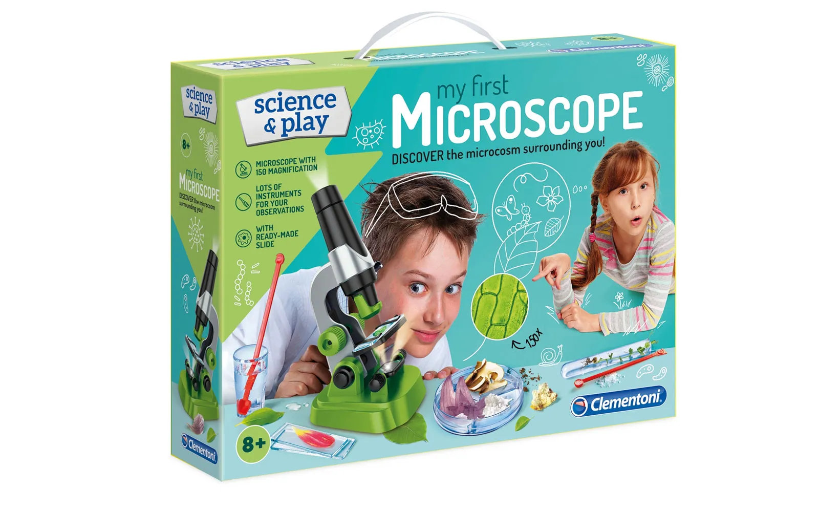 Početnički mikroskop za vaše najmlađe. Sadrži sve potrebne pomagala za trenutačan rad. Odlikuje ga 150x povećanje i kvalitetni materijali te funkcionalnost. Mikroskop će zadovoljiti čak i najzahtjevnije mlade istraživače.