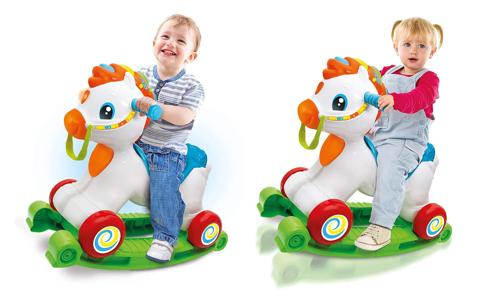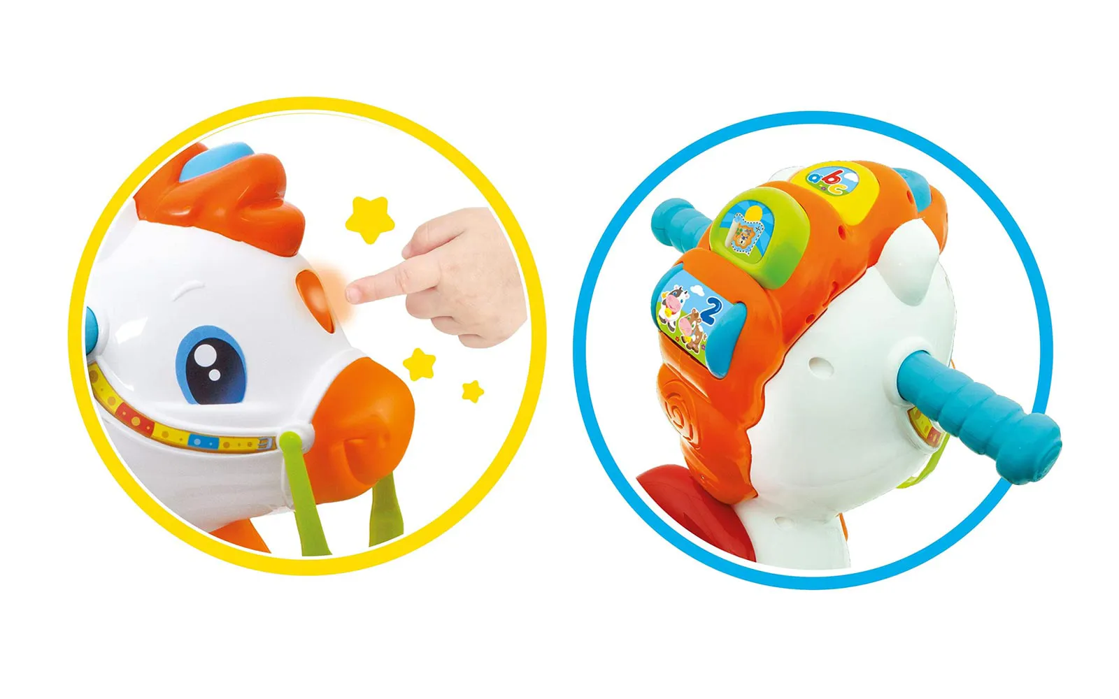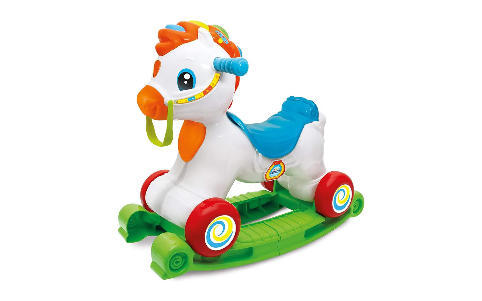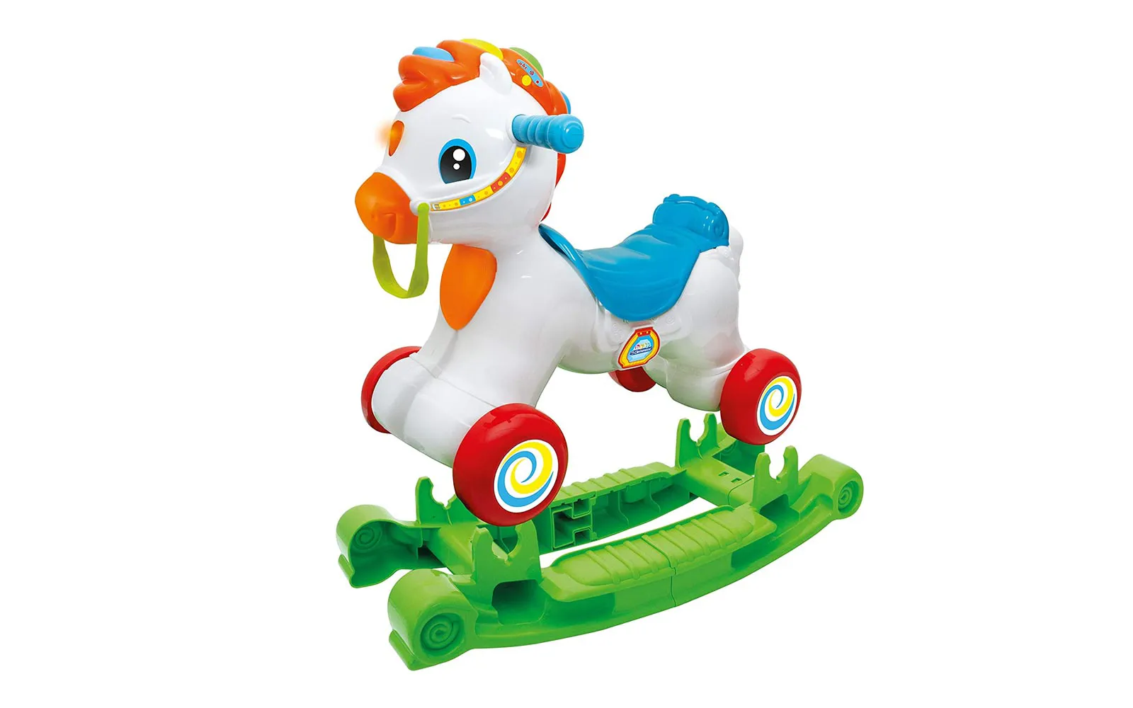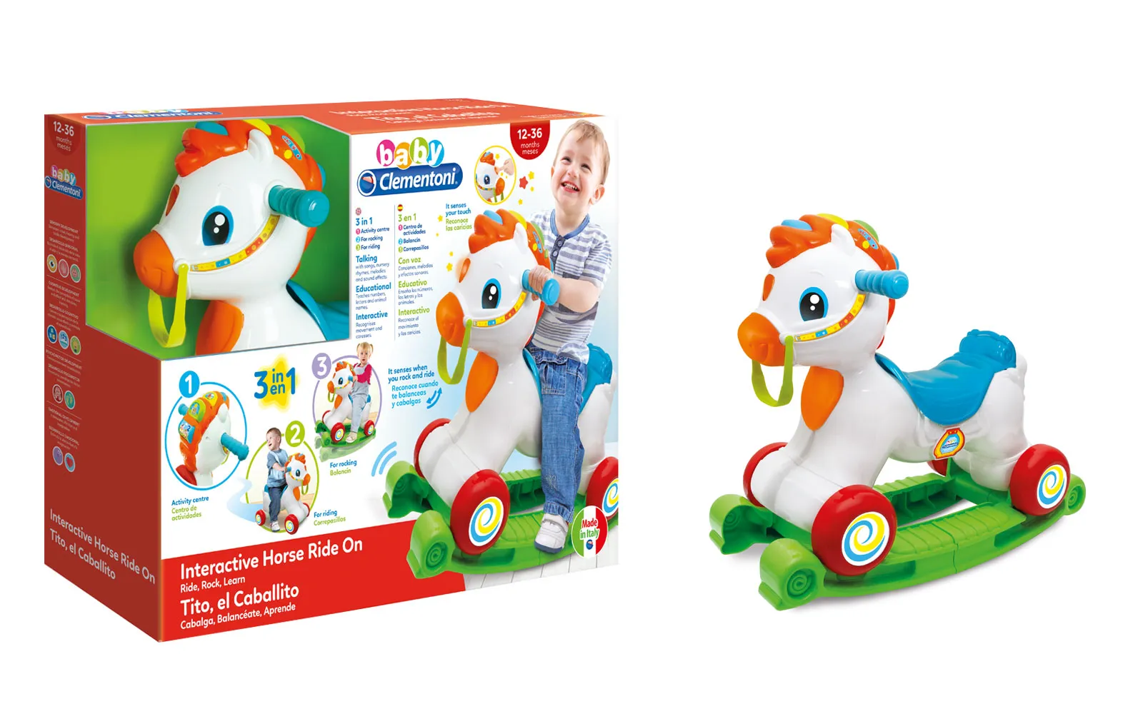 INTERAKTIVNI KONJIĆ 3 U 1, CLEMENTONI: Pripremite se za nezaboravne igre i učenje s interaktivnim konjićem 3 u 1! Clementoni, vodeća tvrtka u razvoju igračaka, stvorila je ovu simpatičnu igračku koja prati djecu na njihovom putu odrastanja. PRILAGODLJIVA IGRA: U prvoj fazi, konjić se koristi kao ljuljačka, omogućujući djeci zabavnu i sigurnu igru. No, kad dijete odraste i postane dovoljno veliko, donja se ploča može ukloniti da postane pravi konjić na kojem dijete sjedi i kreće se svojim nogama. Tako se konjić kreće, pružajući djetetu dodatnu zabavu i interakciju. OBRAZOVANJE NA ZABAVAN NAČIN: Na glavi konjića postoje gumbi pomoću kojih se dijete uči slova, brojeve i imena životinja na talijanskom i engleskom. Interaktivni konjić prepoznaje pokrete, poput ljuljanja ili jahanja, i reagira svjetlosnim i zvučnim efektima. Pjeva pjesme, govori dječje rime i nudi raznovrsne zvučne efekte, omogućujući djeci učenje kroz igru. SADRŽAJ SETA: interaktivni konjić 3 u 1. Set interaktivnog konjića 3 u 1 Clementoni idealan je za djecu koja se žele zabavljati učeći i istražujući svijet oko sebe. Dopustite da ih ovaj čarobni konjić odvede na nevjerojatnu avanturu!