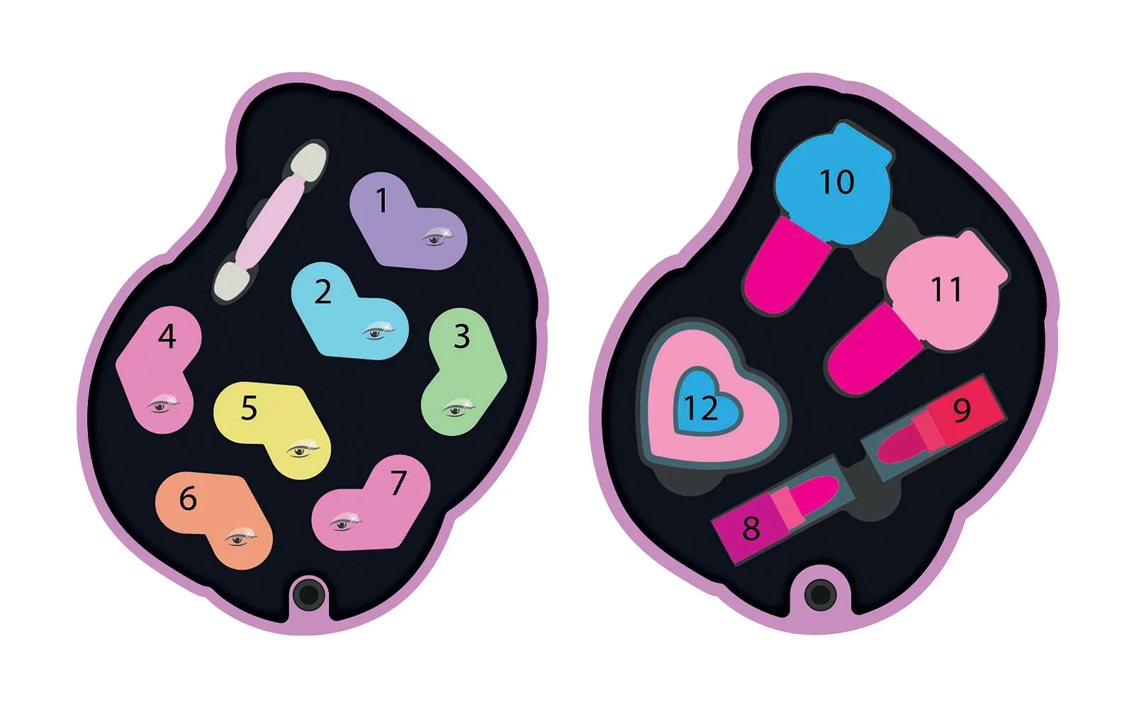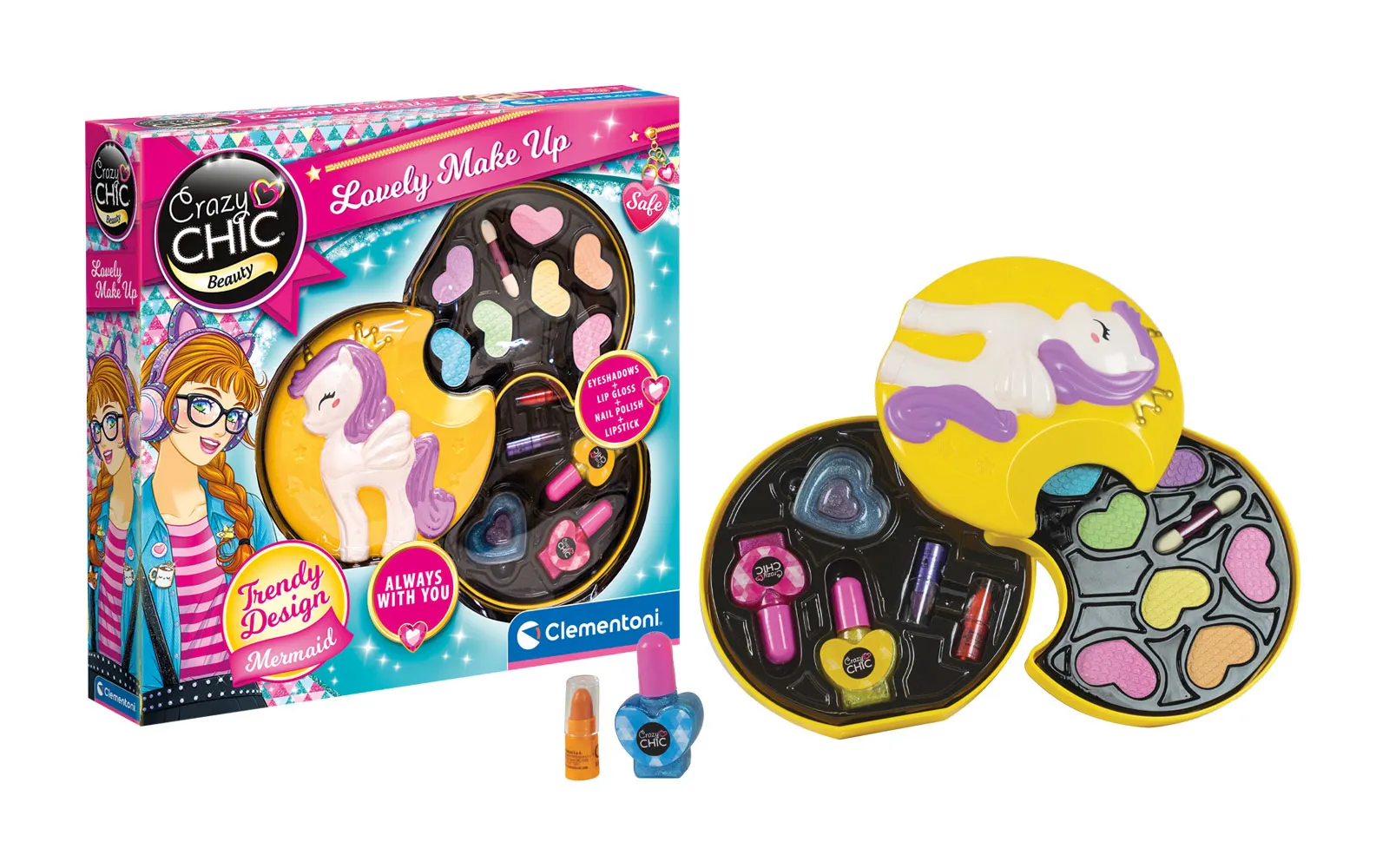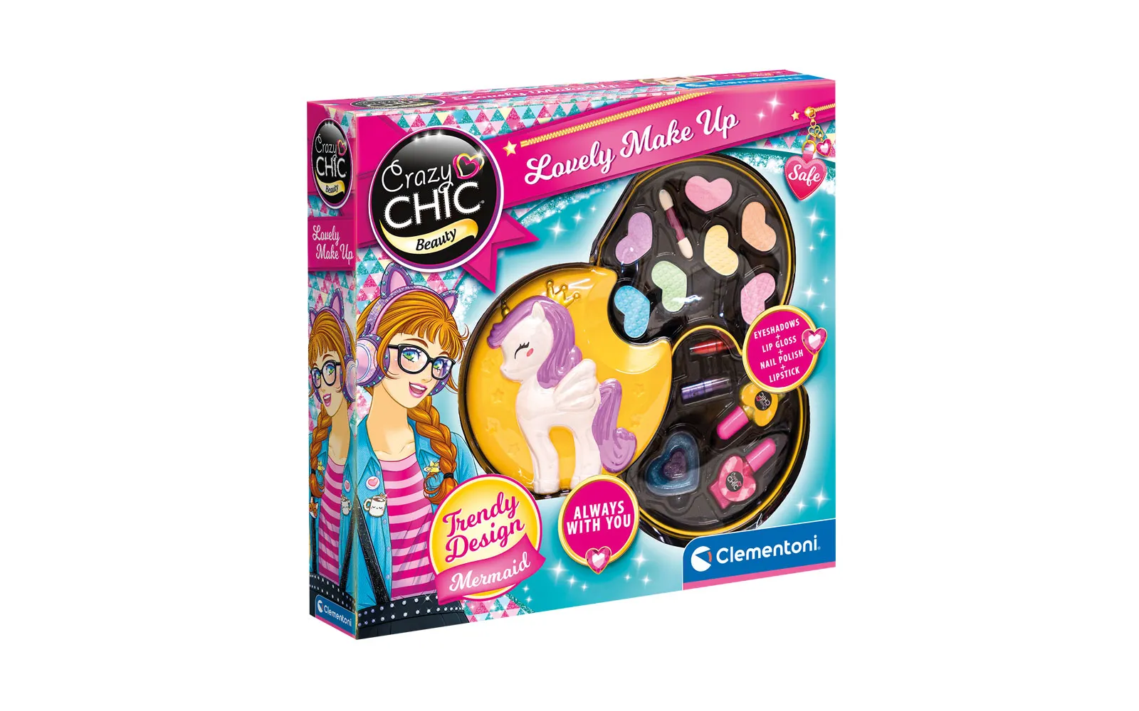 Jednorozi su prekrasna i tajanstvena bića koja donose puno radosti u svijet. Isto možete očekivati od make-up seta Crazy Chic s motivom jednoroga. Odaberite šminku i neka zabava počne. U setu su uključeni ruž za usne, lak za nokte, sjajilo za usne, sjenilo za oči i aplikator za nanošenje. Make-up paleta je praktičnog oblika, stoga djevojčice mogu uvijek nositi s sobom. SASTAV\/ SASTOJCI: (1-7) PRAHAST SJAJ ZA OČI – SENCILO ZA OČI U PRAHU 4,2 g: Talk, Mica, Magnezij stearat, Ethyhexil palmitat, Polybutene, Panthenol , Phenoxyethanol, Oktan-1,2-diol, Ethylhexilglicerol, Parfum - Jagoda. +\/-: CI 45410, CI 19140, CI 42090. (8-10) RUŽ ZA USNE 1,5 g: Ricinus Communis Seed Oil, Ethylhexyl Palmitate, Candelilla Cera, Polybutene, Cera Alba, Tridecyl Trimellitate, Isopropyl Palmitate, Copernicia Cerifera Cera, Phenoxyethanol, Parfum - Strawberry. +\/-: CI 45410, CI 19140, CI 42090. (11-13) LAK ZA NOKTE 15 ml: Aqua, Polyvinyl Alcohol, Mica, Carbomer, Sorbitan, Sesquioleate, Citric Acid, Phenoxyethanol, Octane-1,2-diol, Ethylhexilglycerin. +\/-: CI 45430, CI 42090, CI 19140. (14) SJAJILO ZA USNE 15 g: Polybutene, Ethylhexyl Palmitate, Tridecyl Trimellitate, Candelilla Cera, Cera Microcristallina, Cera Alba, Isopropyl Palmitate, Mica, Parfum-Jagoda, Phenoxyethanol. +\/-: CI 45410, CI 42090.