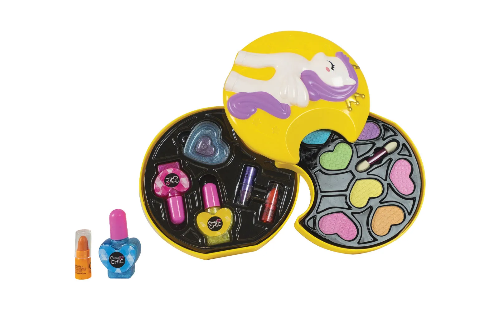 Crazy Chic make up set s motivom jednoroga. Zasjajte u punom sjaju jer set sadrži sve potrebno za savršen make up. U setu su uključeni ruž za usne, lak za nokte, sjajilo za usne i sjenilo za oči.