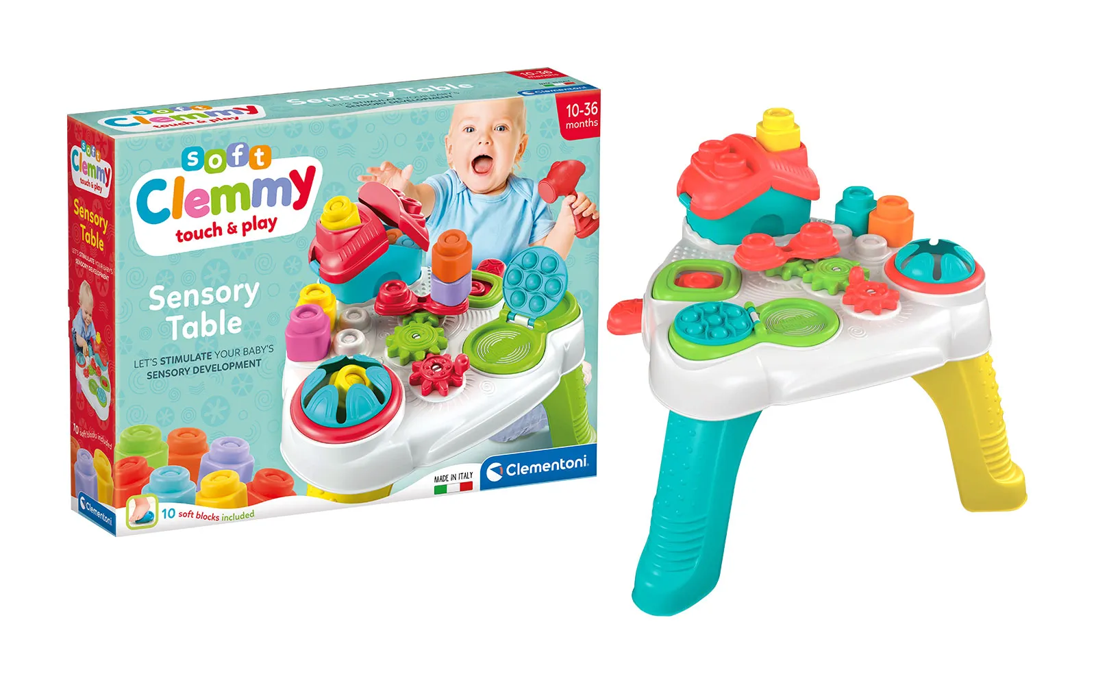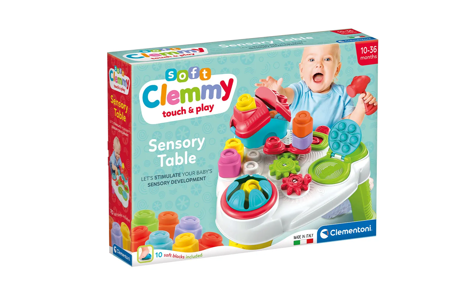 IDEALNA IGRA ZA NAJMLAĐE! Obradujte svoje dijete predivnim svijetom Clemmyja! Ovaj senzorni set posebno je osmišljen za najmlađe kako bi kroz igru razvijali motoričke sposobnosti, senzorna svojstva i vještine rukovanja. Mekani kockovi su sigurni, šareni i laki za hvatanje, što omogućava djeci neograničenu kreativnost. ISTRAŽIVANJE KROZ DODIR I IGRU. Senzorna tablica prepuna je zabavnih interaktivnih elemenata koji potiču dječju znatiželju i istraživanje. Djeca mogu otvarati krov kućice, umetati kocke u rupe, pritiskati gumbe i koristiti mekani čekić za još veću aktivnost u igri. Kocke su izrađene od mekanih materijala koji su ugodni na dodir, omogućujući sigurnu igru bez oštrih rubova. UČENJE NA ZABAVAN NAČIN: ovaj set nije samo igračka, već i odličan alat za razvoj dječjih finomotoričkih vještina, koordinacije očiju i ruku te senzornih sposobnosti. Slažući i slažući kocke potiče se logičko razmišljanje i kreativnost, a pružaju se opuštena i zabavna igra. SADRŽAJ: senzorna tablica s različitim interaktivnim elementima, 10 mekanih šarenih Clemmy kocki, mekani čekić za zabavno istraživanje, sortirnik kocki za poticanje logičkog razmišljanja. Mekane Clemmy kocke odličan su izbor za djecu od 10. do 36. mjeseca starosti. Ova igračka će pomoći djeci u razvoju osnovnih vještina kroz sigurnu i opuštenu igru, dok će ih oduševiti svojim bojama, teksturama i mogućnostima istraživanja.