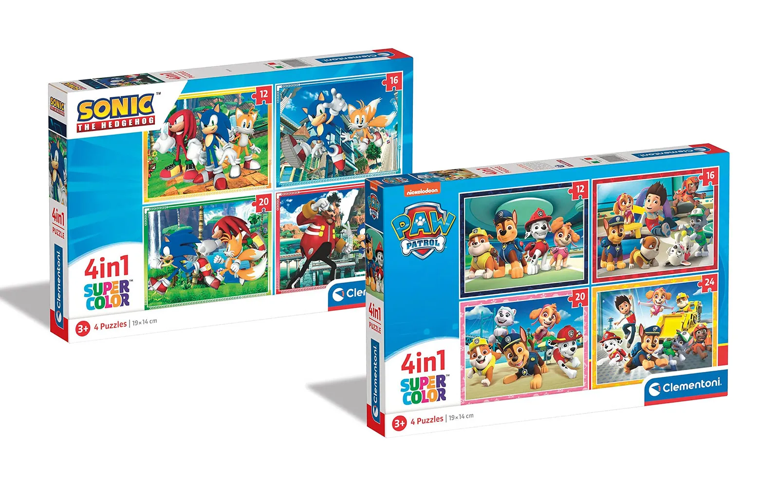 Puzzle različitih crtanih junaka 4 u 1 savršene su za djecu koja se upuštaju u sastavljanje puzzli. Set sadrži 4 različita motiva junaka Paw Patrol ili Sonic the hedgehog - sa 12, 16, 20 i 24 dijela i omogućava različite razine složenosti sastavljanja. Puzzle su dimenzija 19 x 14 cm.