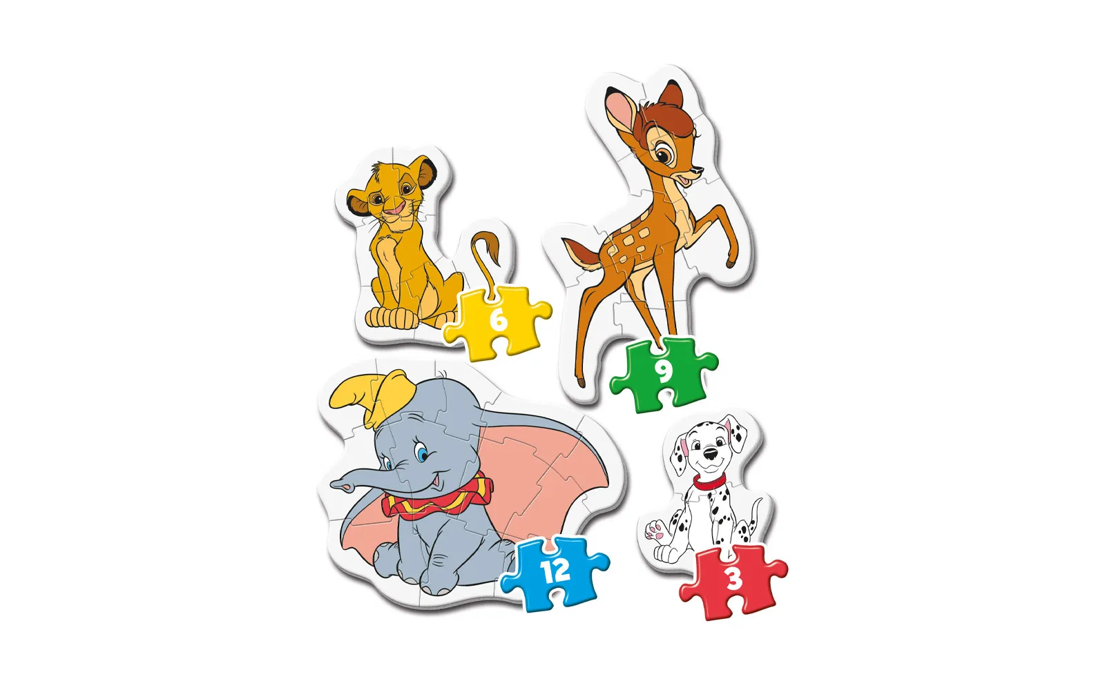 Puzzle baby moje prve sadrže jednostavne i preslatke slagalice za naše najmlađe. Uključene su 4 odvojene slagalice koje imaju različit broj dijelova (od 2 do 12). Puzzle su više nego pogodne za prvu slagalicu djeteta. Dostupne u motivu Jumba.