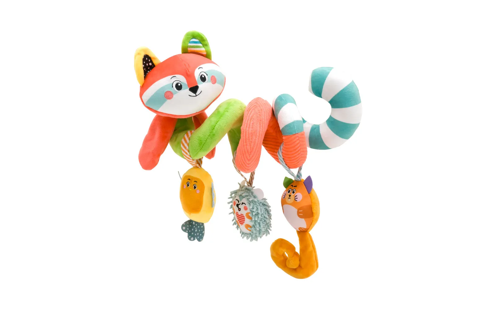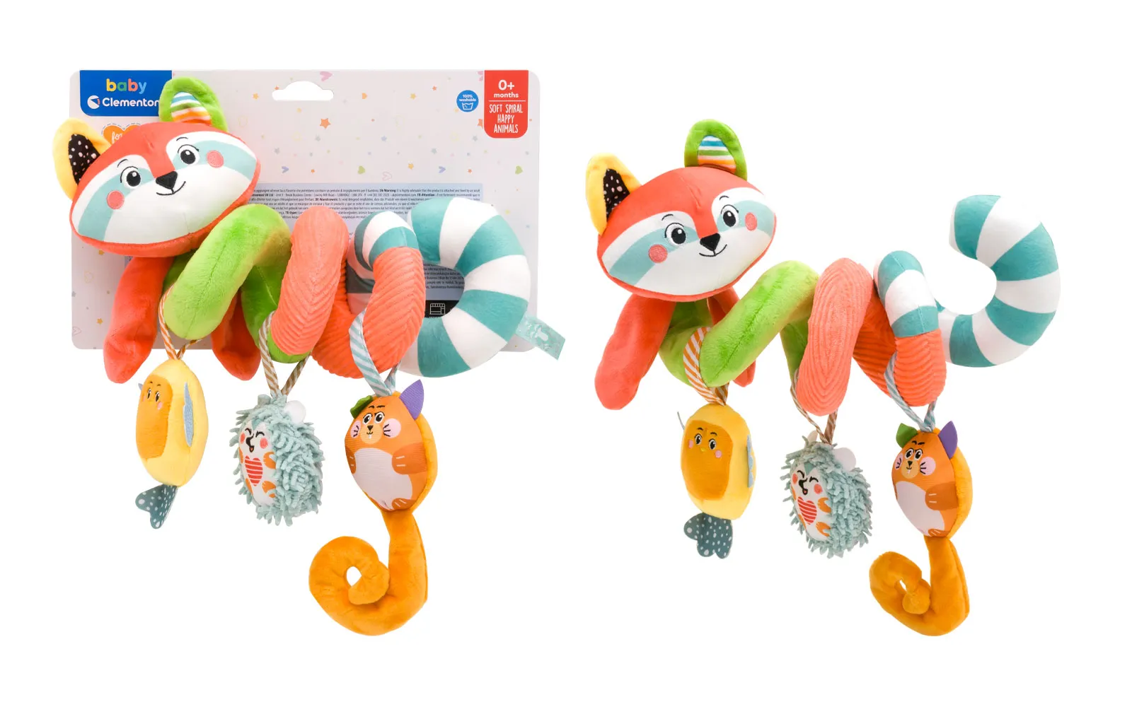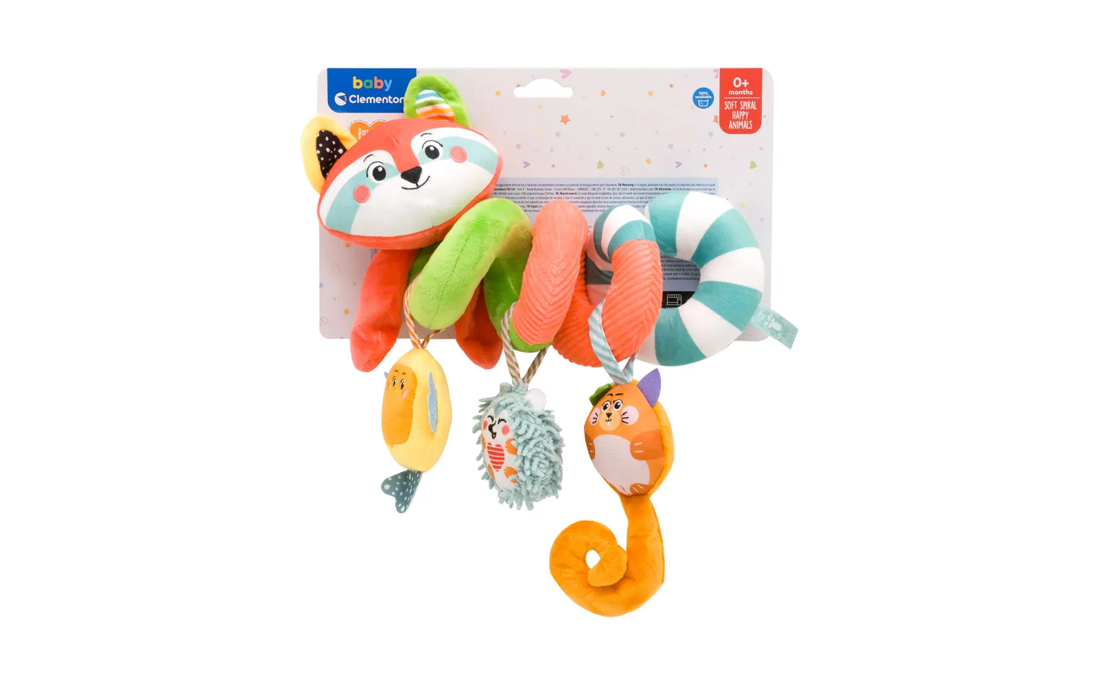 Višebojni dječji vrtuljak s privjescima životinjica, Clementoni. Šarmantni rakun i njegovi nježni prijatelji iz šume osiguravaju zabavu i zanimljivu dječju igru - dijete dodiruje različite materijale, a prate ga žive boje. Privjesak ljupke vjeverice ima mekan rep s nabranim efektom, jež i ptičica imaju unutrašnjost s zvečkom. Ova predivna igračka potiče djetetove vještine, te vizualnu i slušnu percepciju.