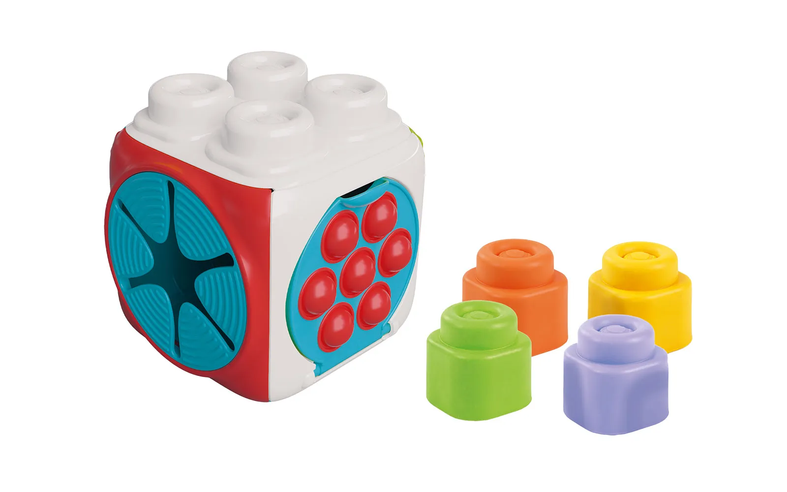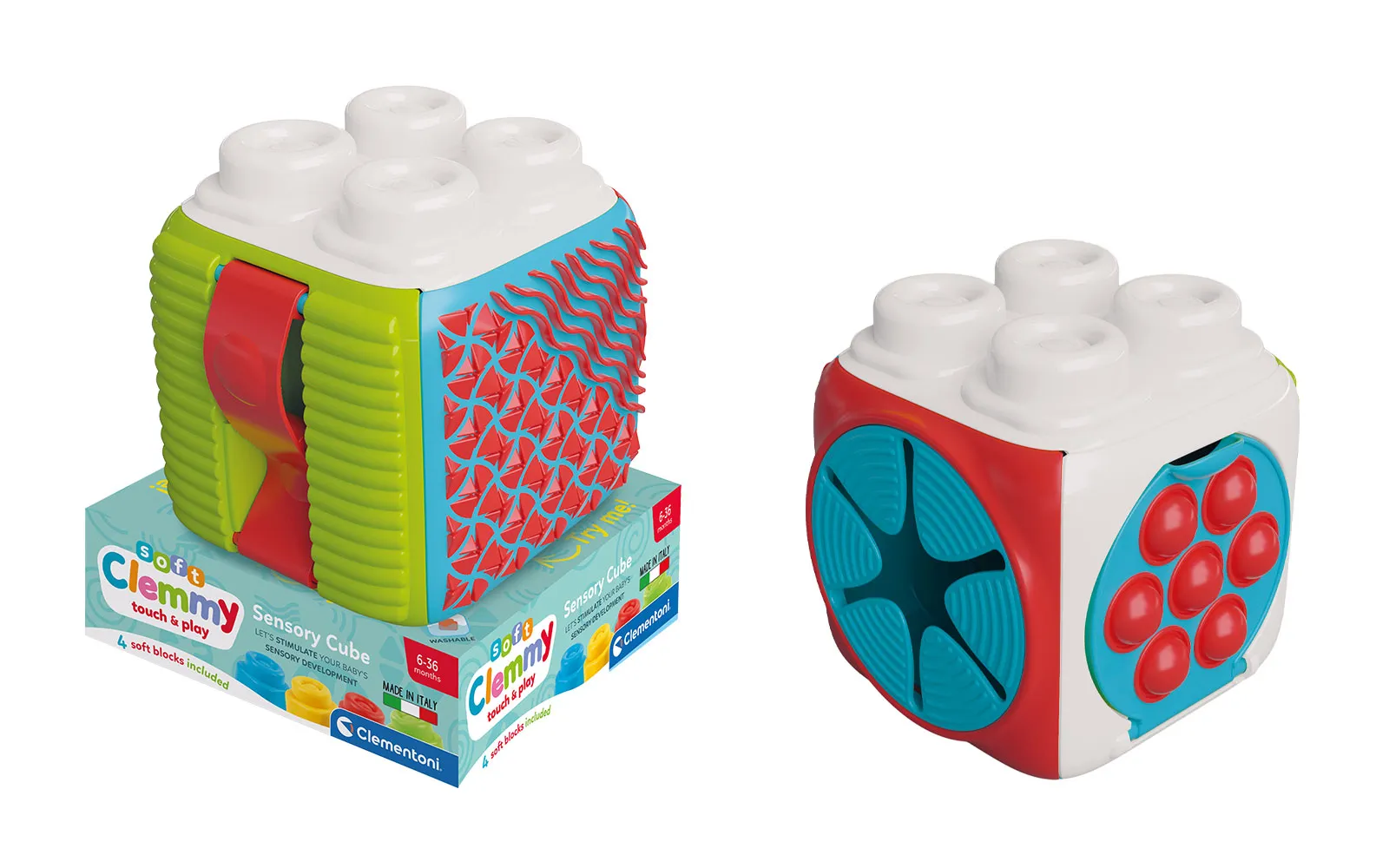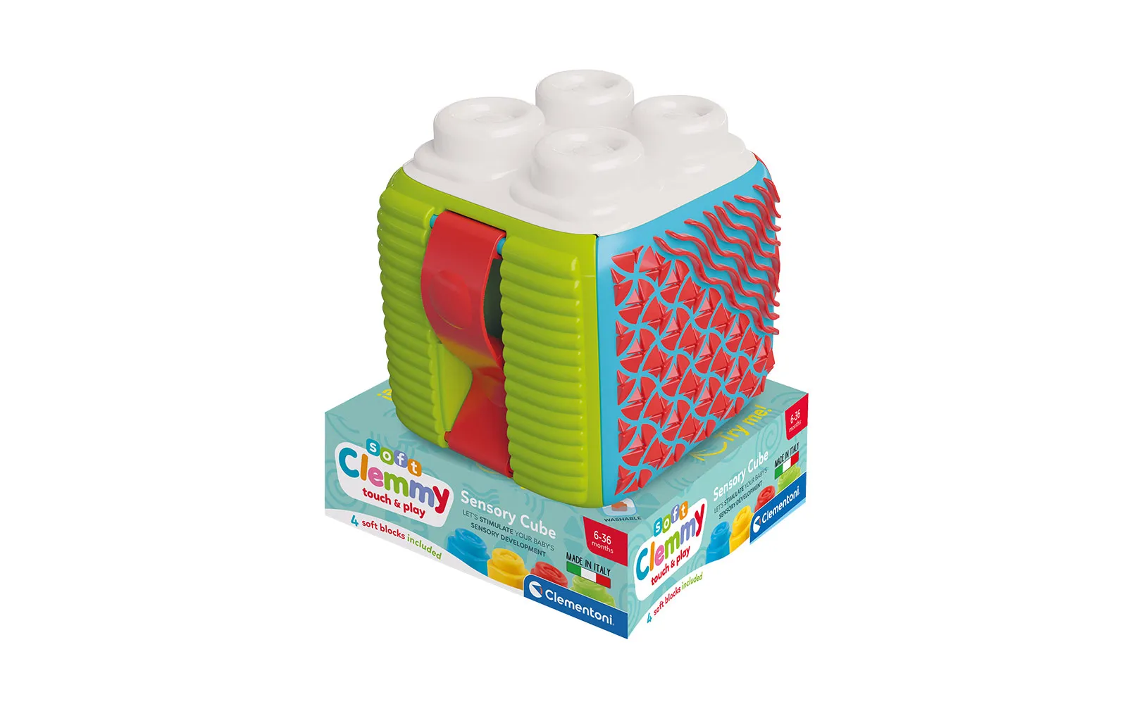 Meki kockovi Clemmy u senzornoj kocki, Clementoni. Senzorna kocka je šarenih i živih boja, što značajno utječe na razvoj dječje mašte, a istovremeno potiče i dodir i razvoj senzorike.