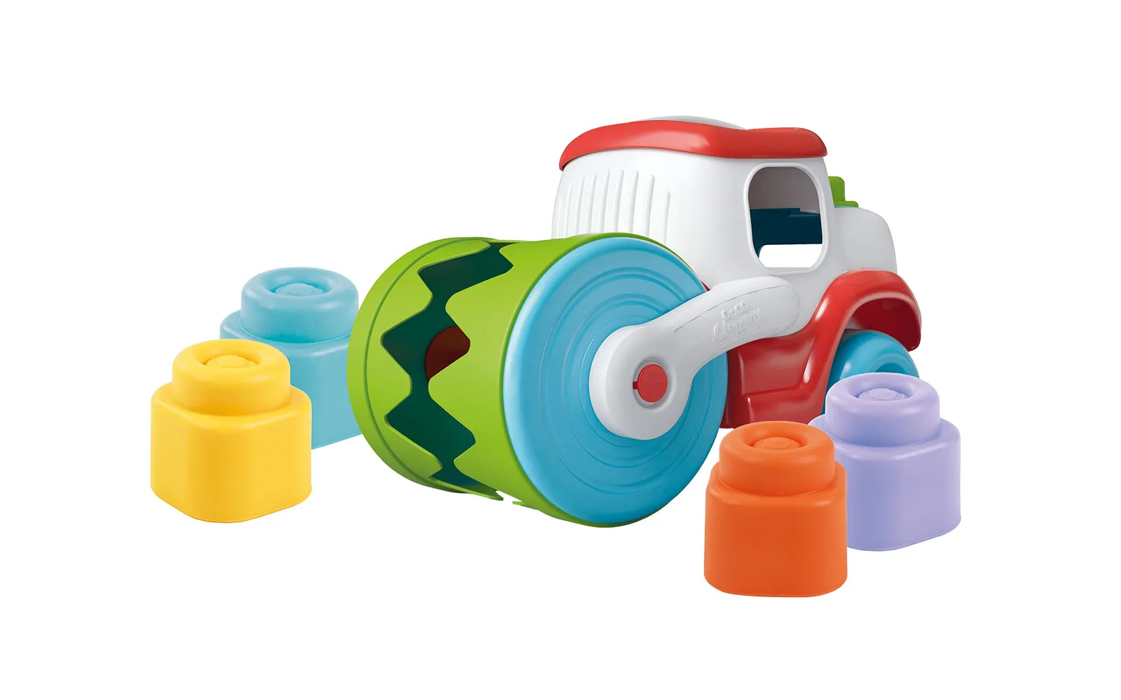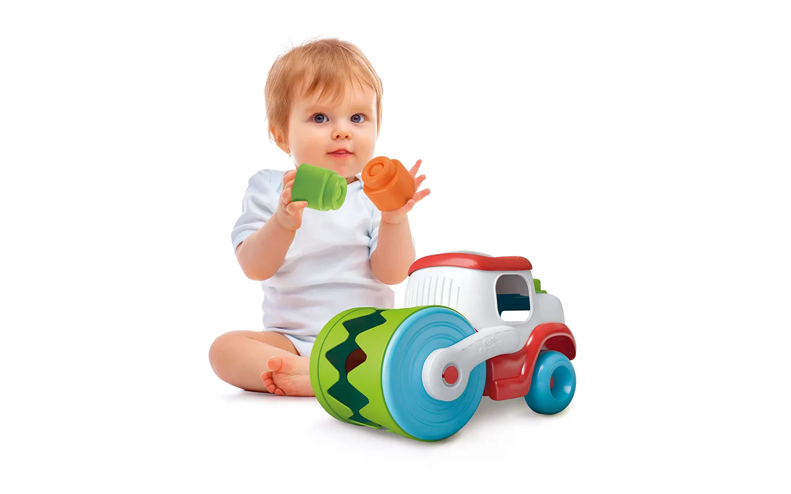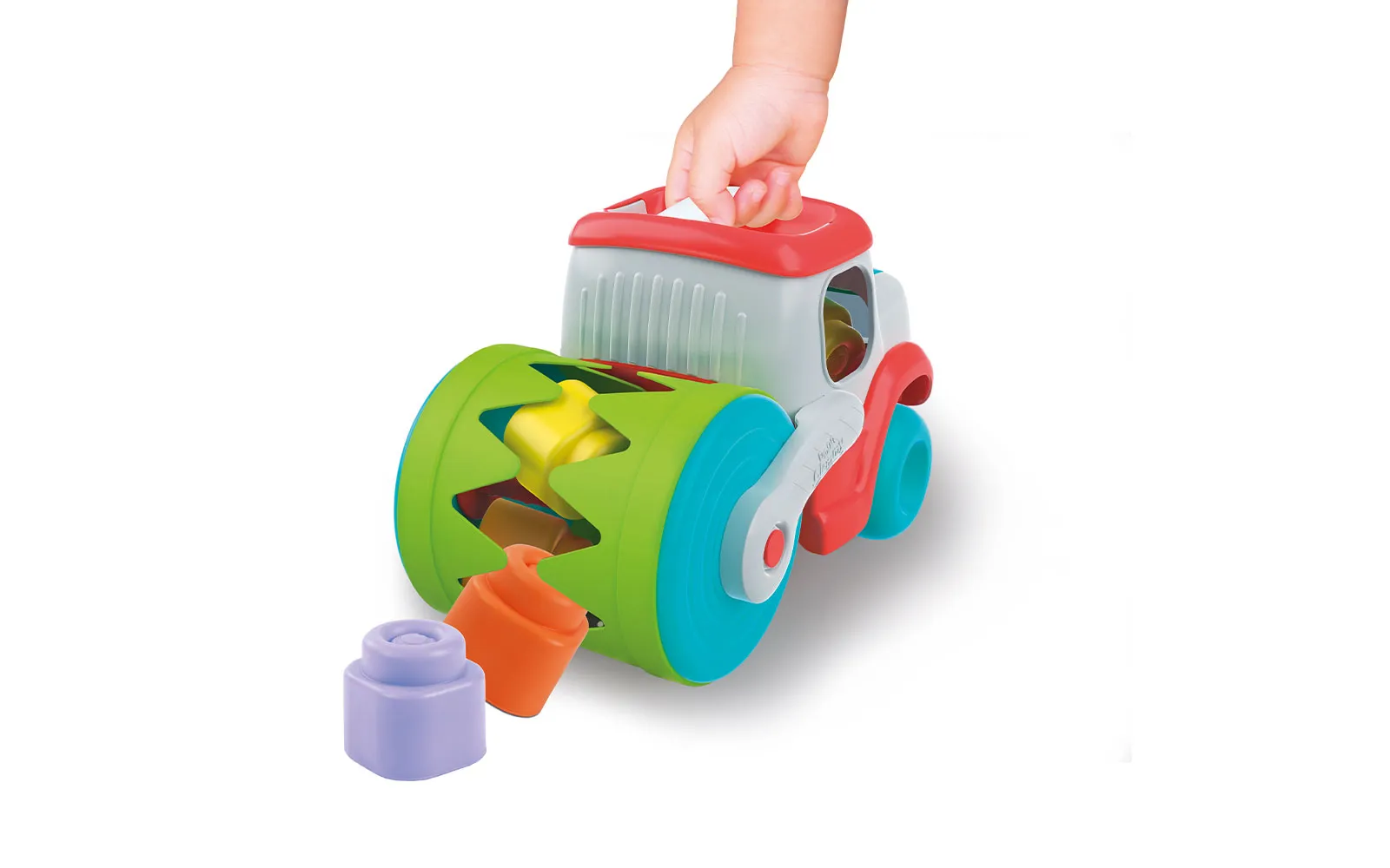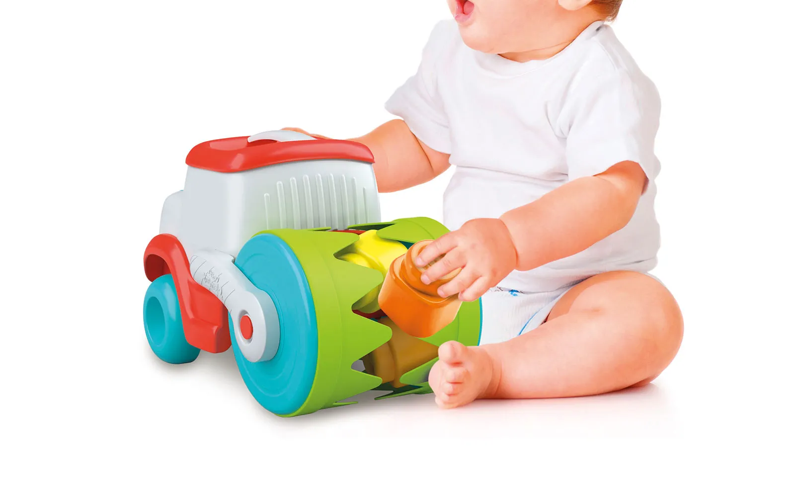 Mekane kocke Clemmy u bageru, Clementoni. Bager je šaren i živahnih boja, što značajno utječe na razvoj dječje mašte, a istodobno potiče i dodir i razvoj senzorike. Više je od samo igračke - to je senzorsko radno vozilo, rana stimulativna iskustva za djecu, dizajnirana da prati dječake i djevojčice u njihovim prvim fazama razvoja. Svojim šarenim dizajnom, mekanim teksturama i brojnim aktivnostima potiče djecu na istraživanje, otkrivanje i prije svega na neprestano igru. Set sadrži senzorske kocke različitih boja i bager.