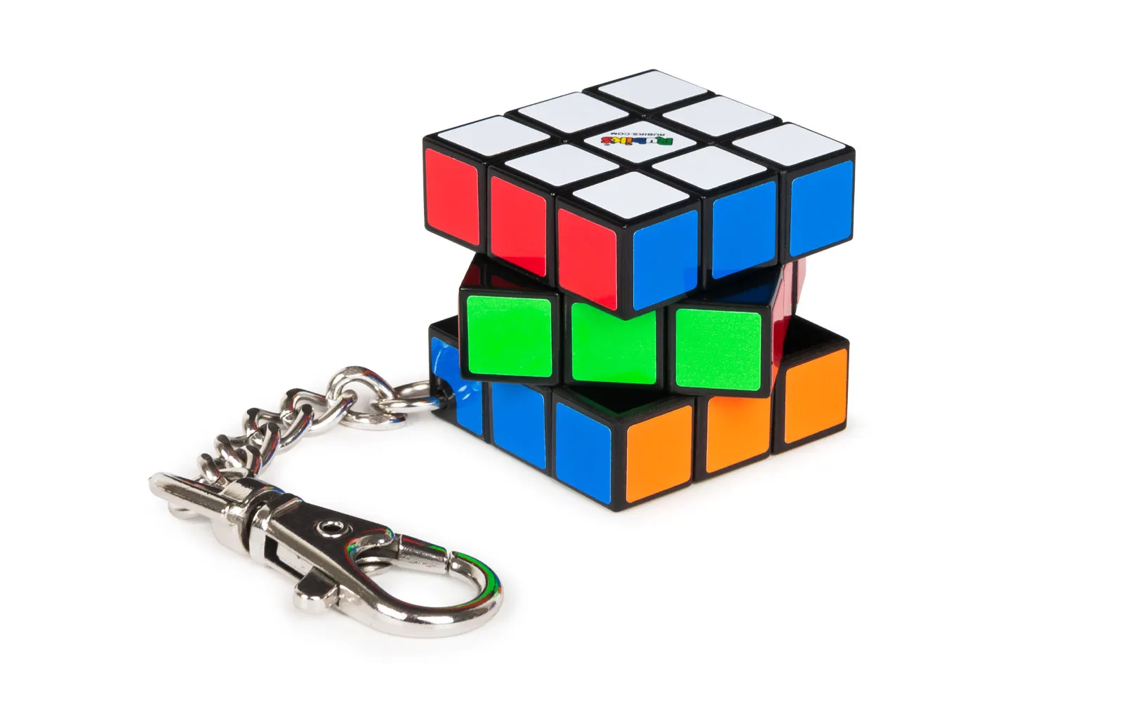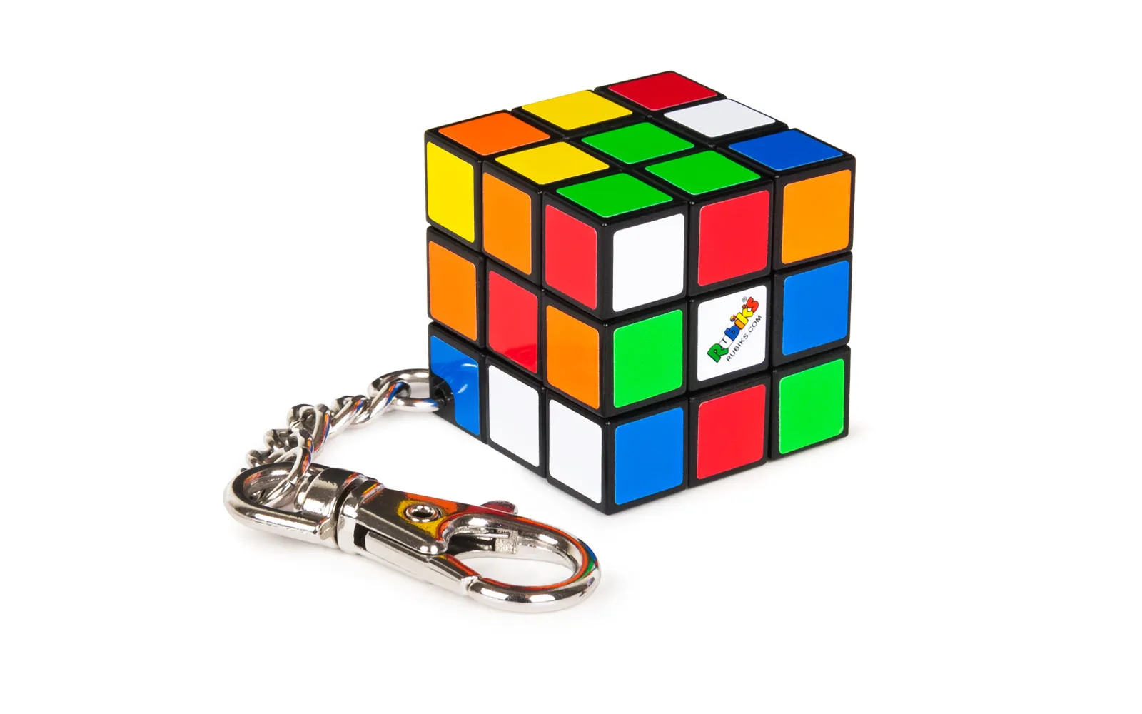 Rubikova kocka 3x3 na privjesku je vrsta poznate mehaničke slagalice i igračke, koju je godine 1974. izumio mađarski izumitelj, kipar i profesor arhitekture Ernő Rubik. Kocka je plastična i sastoji se od 26 (plus jednu nevidljivu jezgru) manjih kockica koje se okreću oko nevidljive jezgre. Svaka od devet vidljivih kvadratnih pločica na strani Rubikove kocke je obojana jednom od šest boja. Kad je kocka riješena, svaka strana Rubikove kocke ima svoju boju. Preporučujemo djeci od 8. godine starosti nadalje. Veličina kocke je 30x30x30 mm.