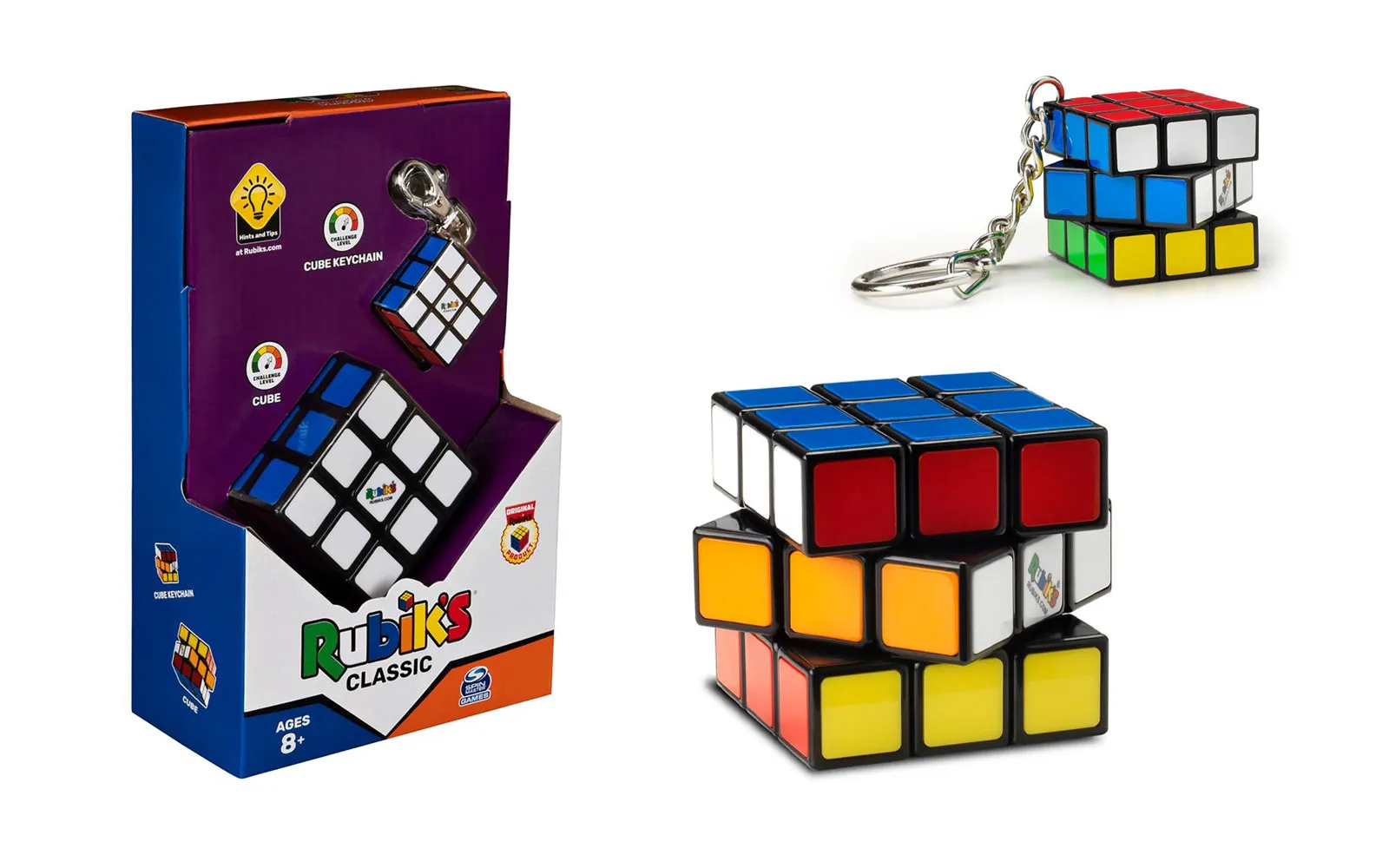 Set klasične Rubikove 3x3 kocke sa dodatnim privjeskom Rubikove kocke 3x3. Rubikova kocka 3x3 je vrsta poznate mehaničke slagalice i igračke koju je 1974. godine izumio mađarski izumitelj, kipar i profesor arhitekture Ernő Rubik. Kocka je plastična i sastoji se od 26 (plus jedne nevidljive jezgre) manjih kockica koje se rotiraju oko nevidljive jezgre. Svaka od devet vidljivih kvadratnih pločica na strani Rubikove kocke obojana je jednom od šest boja. Kada je kocka riješena, svaka strana Rubikove kocke ima svoju boju.Preporučamo djeci od 8. godine starosti nadalje. Veličina kocke je 30x30x30 mm.