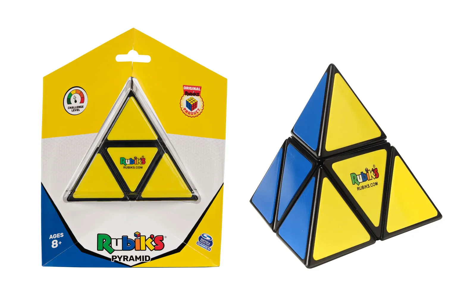 Set Rubikove kocke u obliku piramide. Rubikova kocka je vrsta poznate mehaničke zagonetke i igračke koju je 1974. godine izumio mađarski izumitelj, kipar i profesor arhitekture Ernő Rubik. Kocka je plastična i sastoji se od više površina. Kada je kocka riješena, svaka strana Rubikove kocke ima svoju boju. Preporučujemo djeci od 8. godine starosti nadalje.