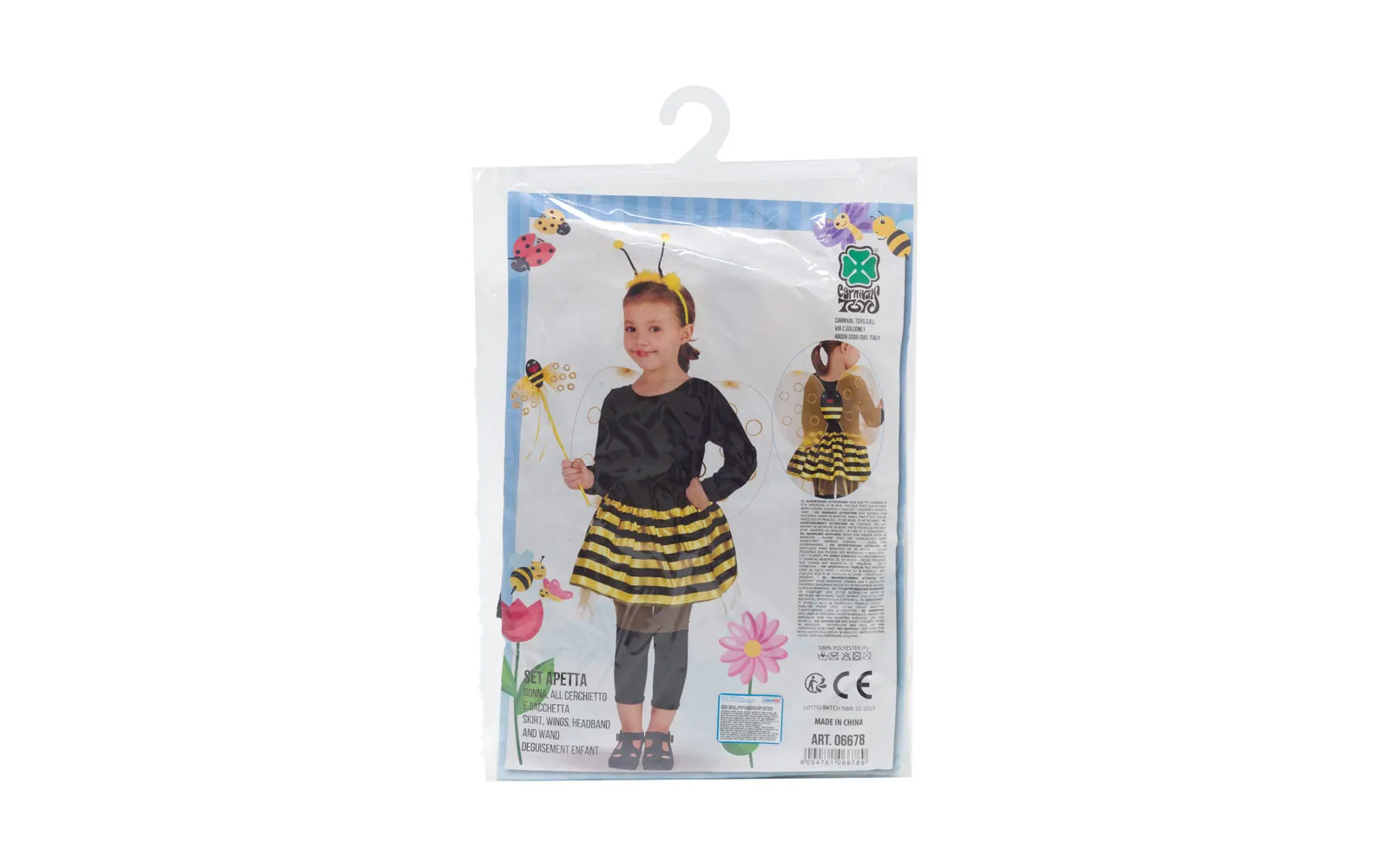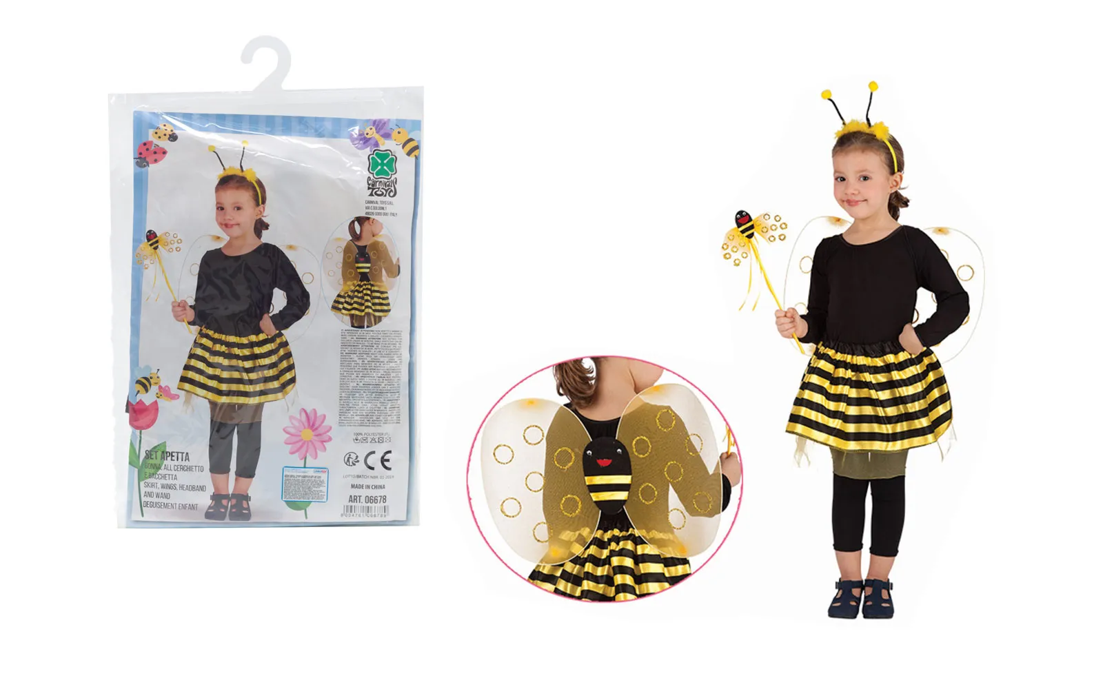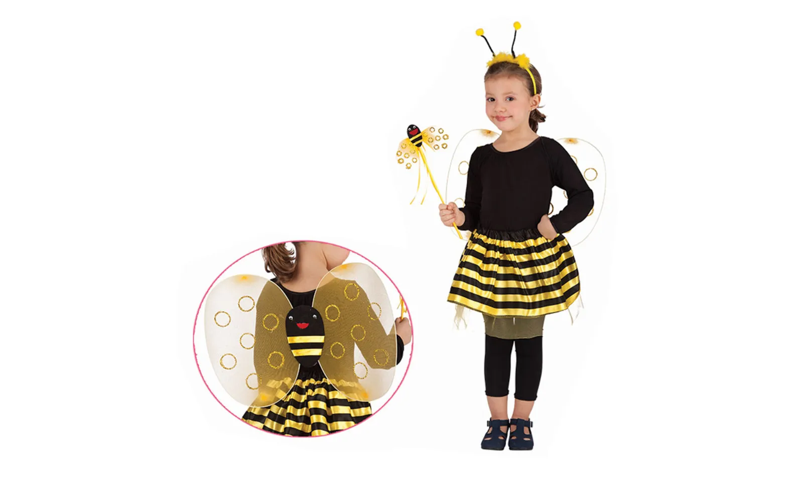 Set pčelica žuto crne boje sadrži krilo, štapić, prsten i krila.