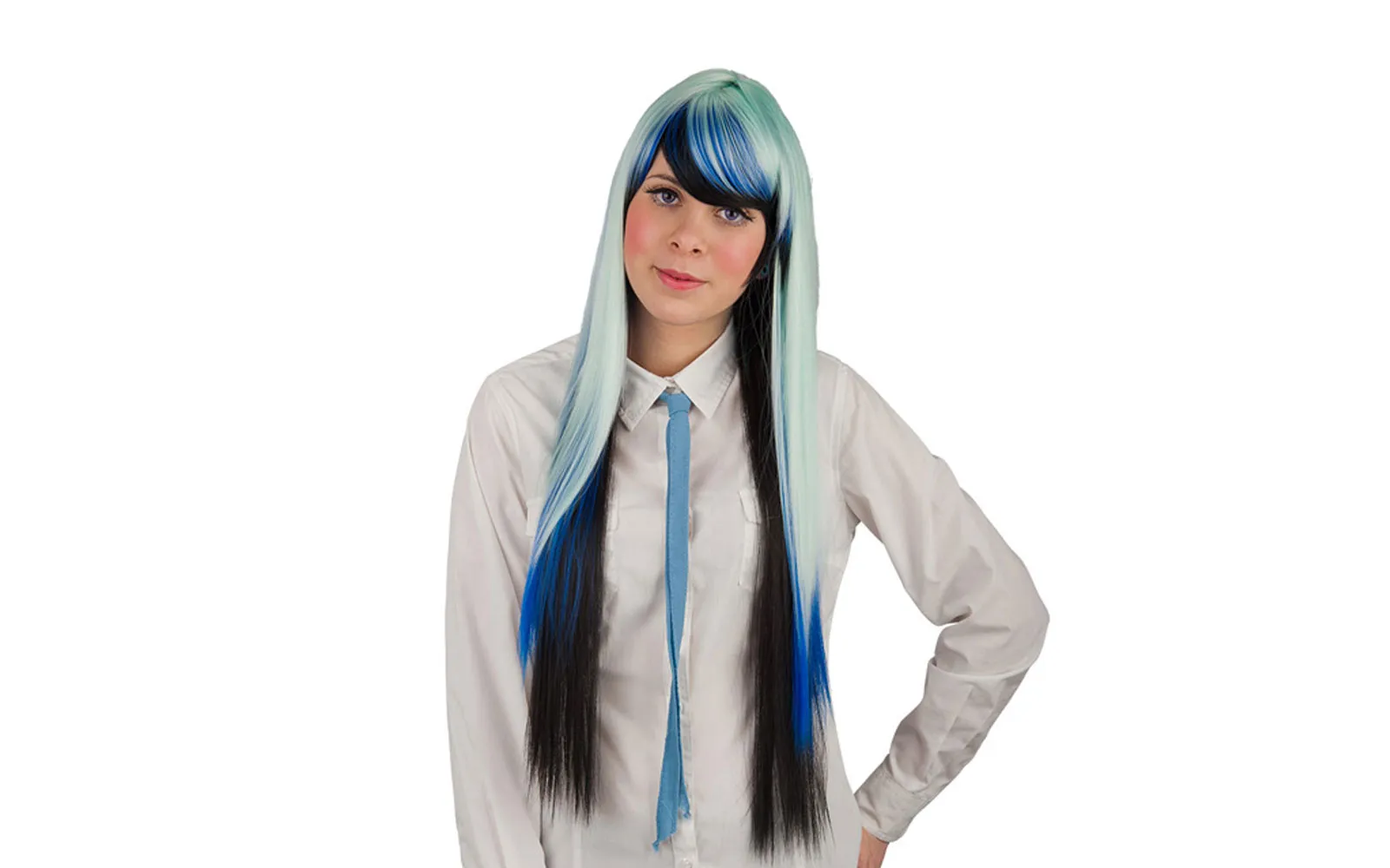 Ako želite postati šarena dugokosa, tu je duga perika crne, plave i zelene boje s šiškama za odrasle. Sastav: 100% POLIESTER.