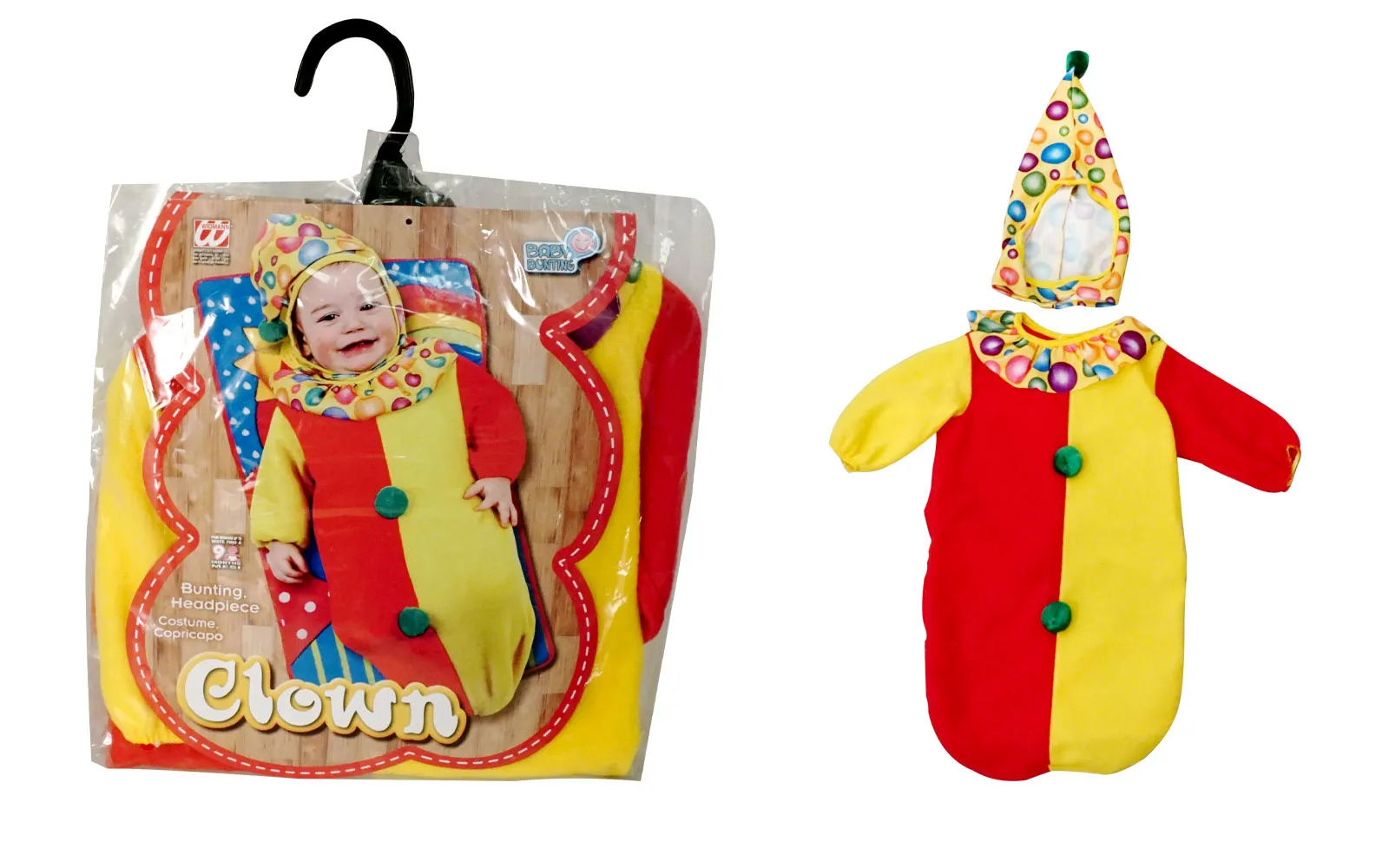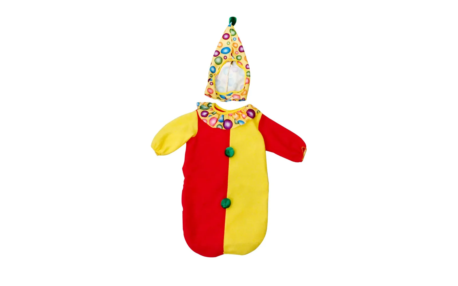 Kostim klauna za najmlađe uključuje kostim i kapicu. Za djecu do 9. mjeseca starosti.