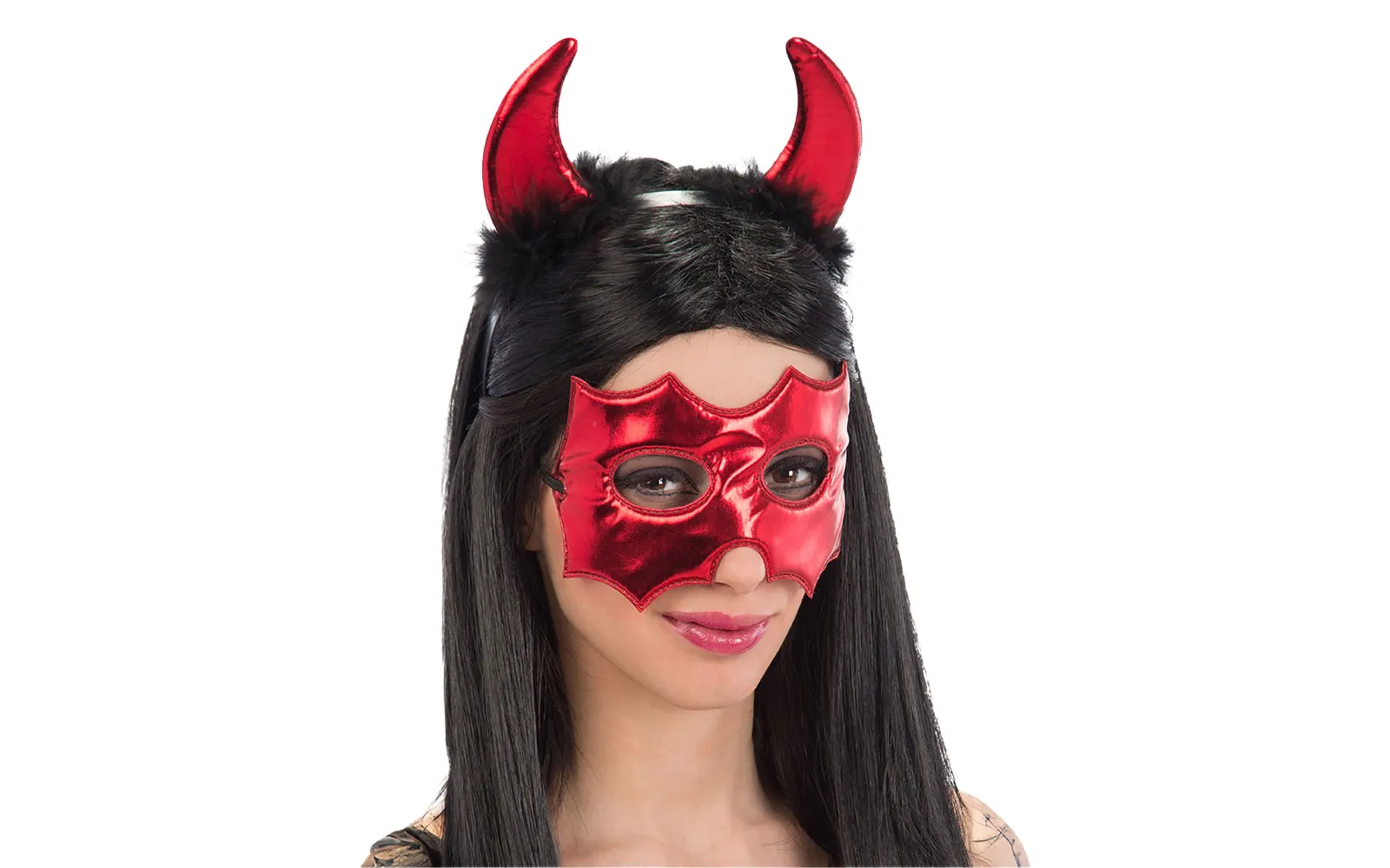 Set sadrži masku i prsten s rogovima vragice napravljen od lureks tkanine za sjajnu vragicu.