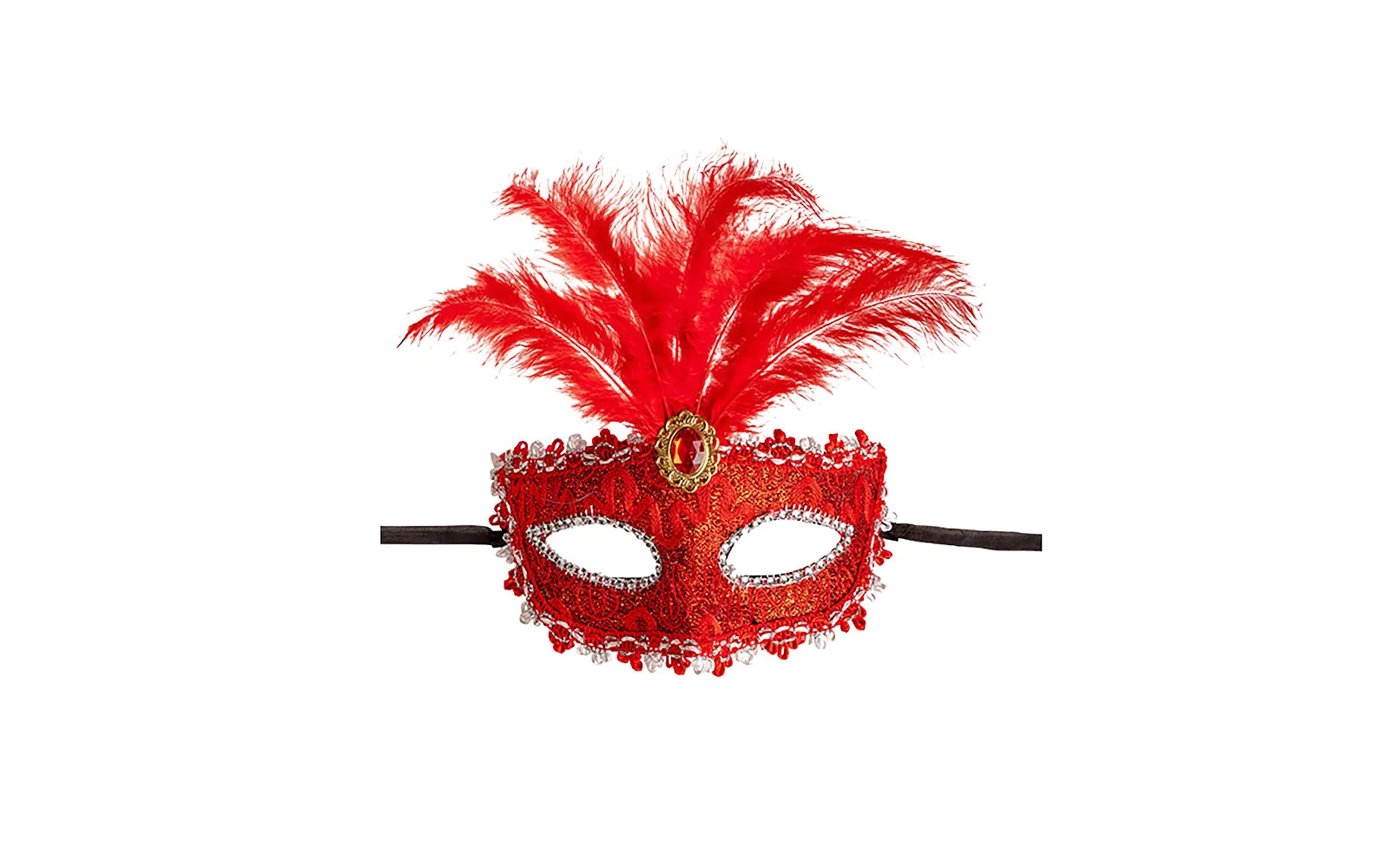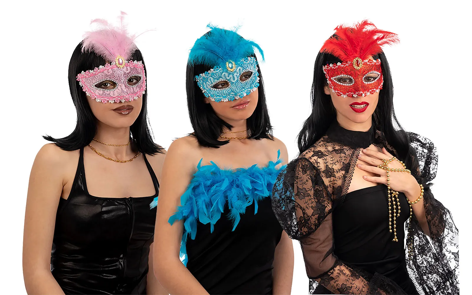Obojana maska s perjem, karnevalske igračke. Stavi karnevalsku masku i stvori pravo karnevalsko ozračje. Dostupno u plavoj, crvenoj ili roza boji.