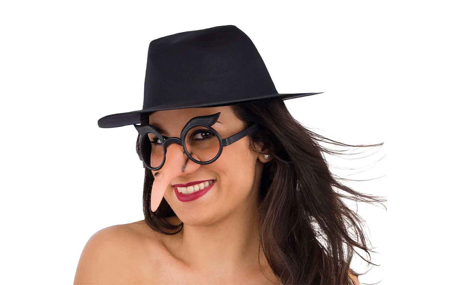 Karnevalski artikl - čarobnjačke naočale s nosom. Za potpunu čarobnjačku opremu stavi čarobnjački nos na naočale i postani prava čarobnica.