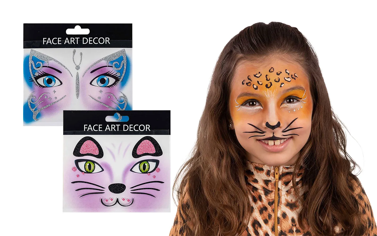 Karnevalska face decoration, Carnival Toys. Savršen dodatak za karnevalske i dječje kostime! Samoljepljiva dekoracija u obliku leoparda, leptira ili mačke za brzo i učinkovito ukrašavanje lica.