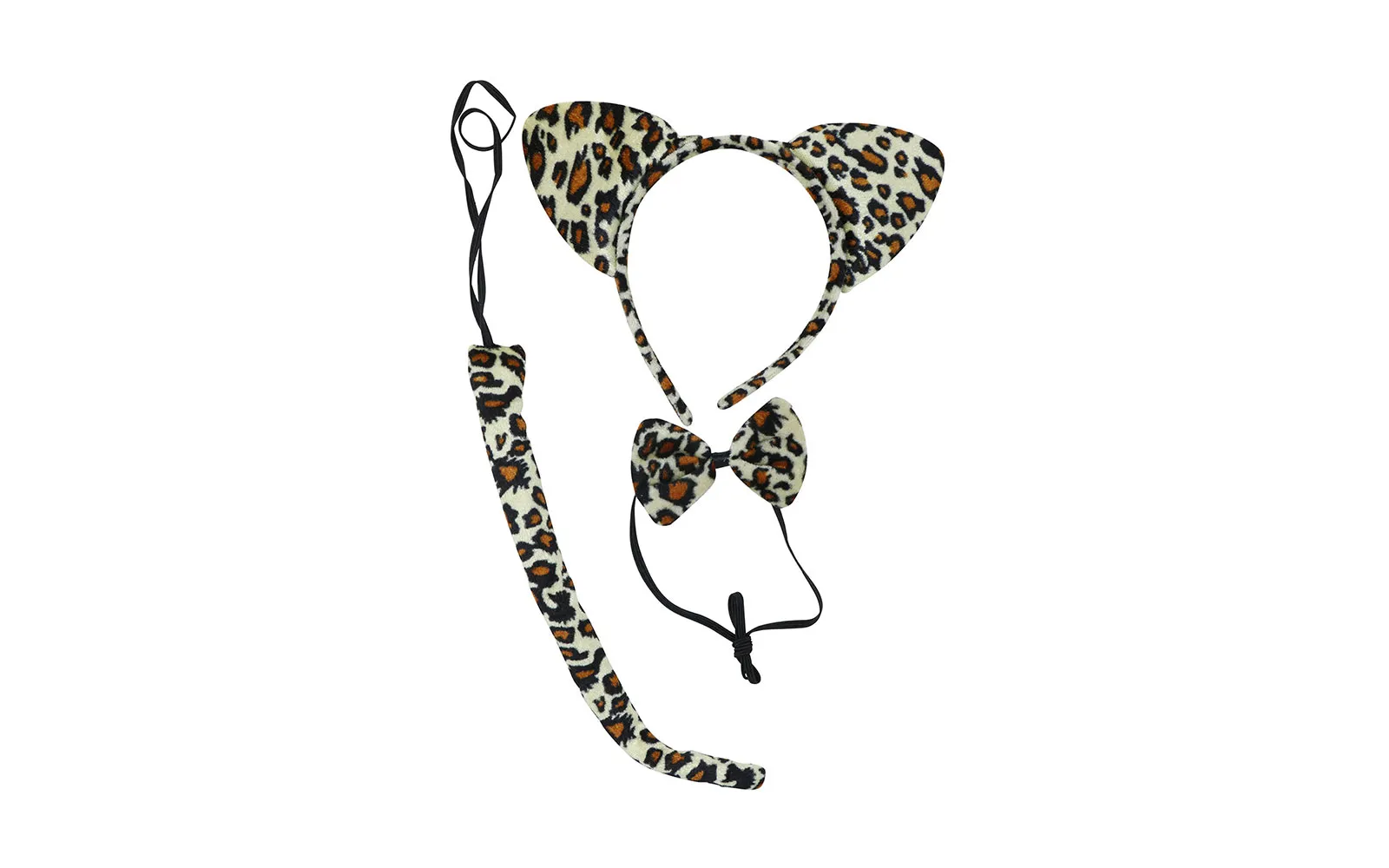 Karnevalski obruč Leopard + leptirić+rep.. Preobrazite se u divlju mačku s ovim razigranim setom! Sadrži traku za glavu s ušima leopardovog uzorka, odgovarajuću leptirić mašnu za oko vrata i dug rep. Savršen dodatak za mačje kostime za karneval, tematske zabave ili scenske nastupe. Komplet je namijenjen odraslima i sigurno će privući pažnju!