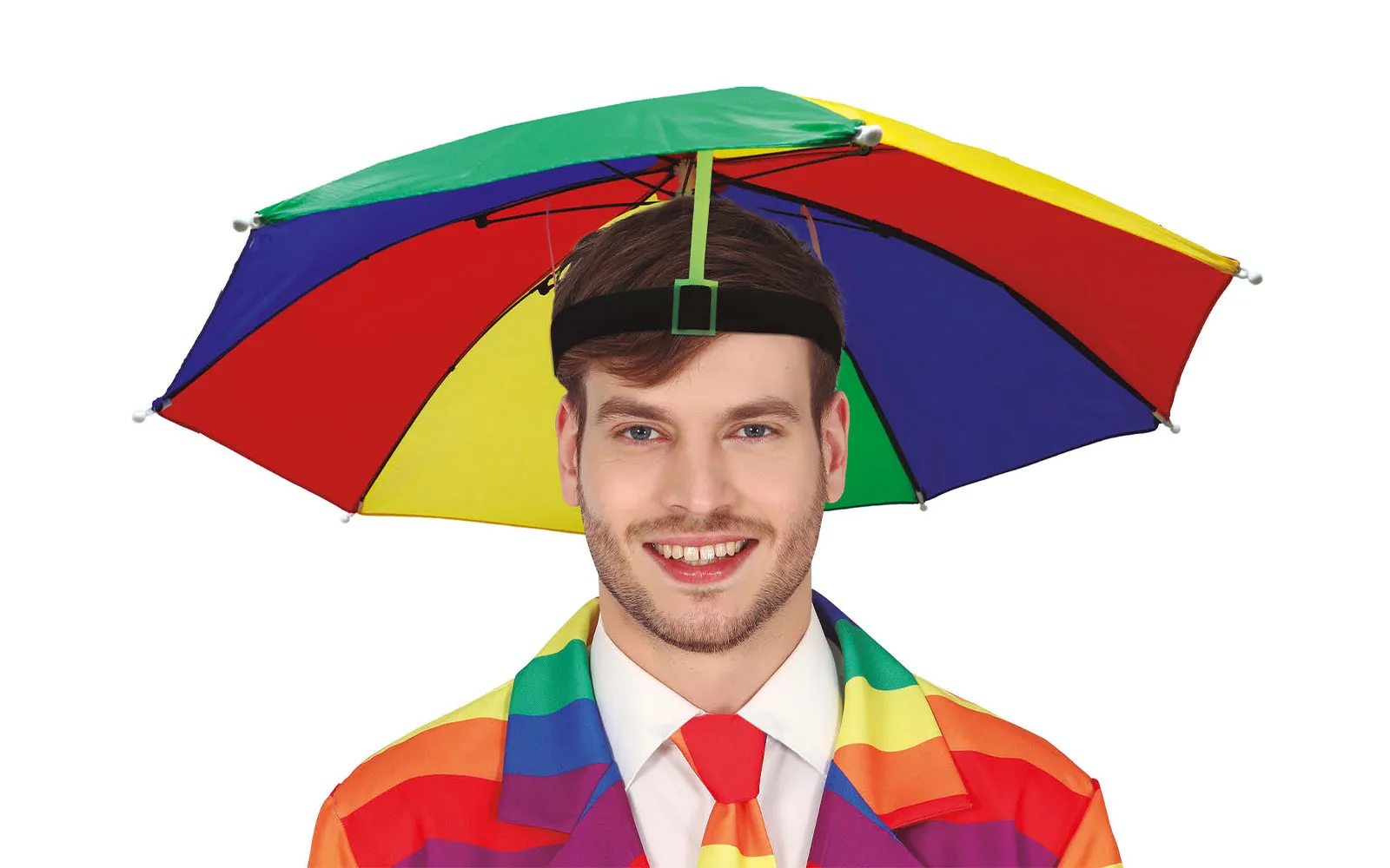 Kišobran u obliku kape, 55 cm. Kapa s pričvršćenim kišobranom je udobna, šarena i savršena za osvježavanje maskenbalskog kostima. Odaberi još kostim i već si prava maskenbalska zvijezda.