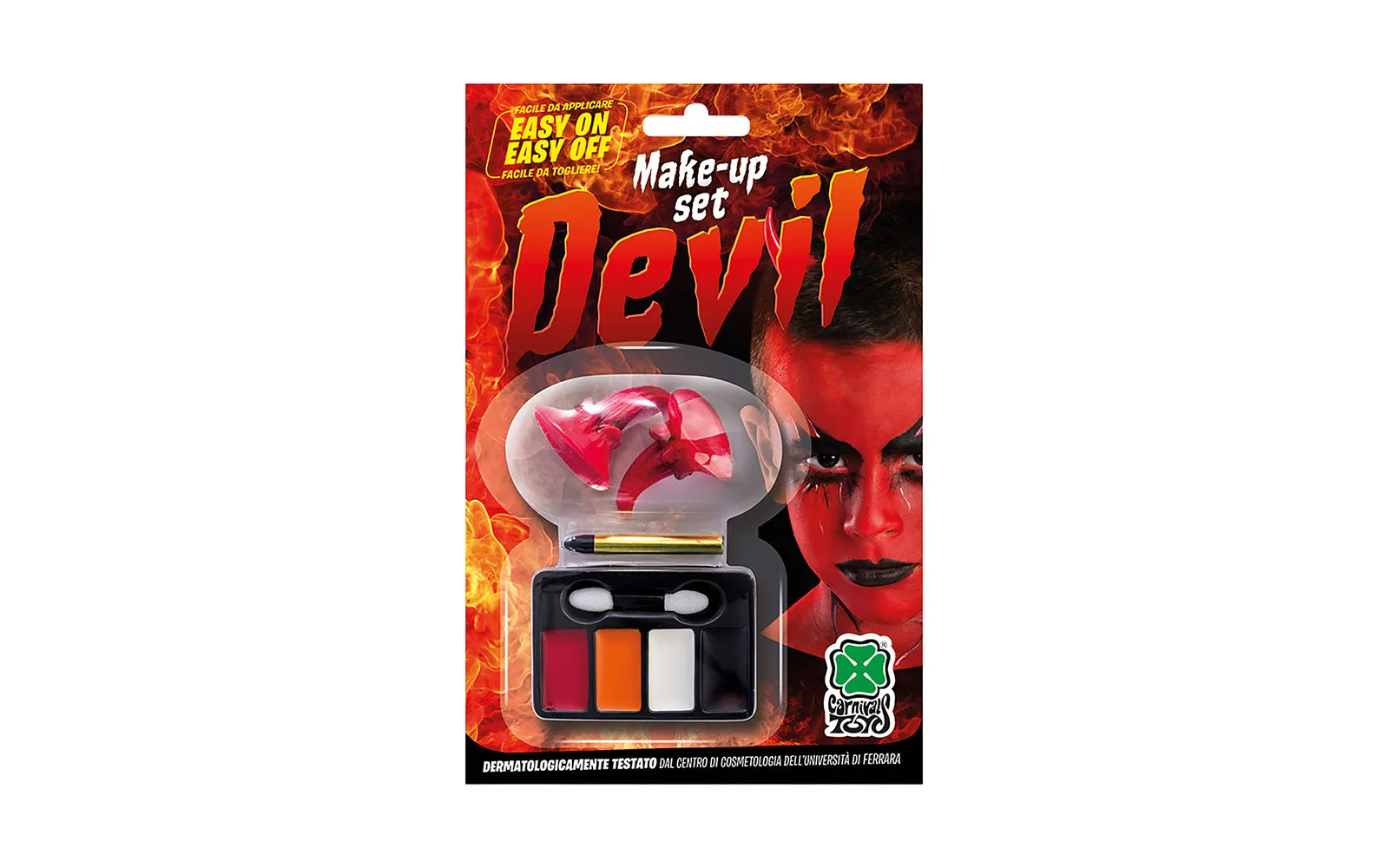 Komplet boja za lice s motivom đavla i dodatkom - nos je savršen izbor za karnevalske zabave, kostime i stvaranje zastrašujućeg izgleda. Boje su sigurne, jednostavne za nanošenje i dugotrajne, da te prate kroz cijelu večer.