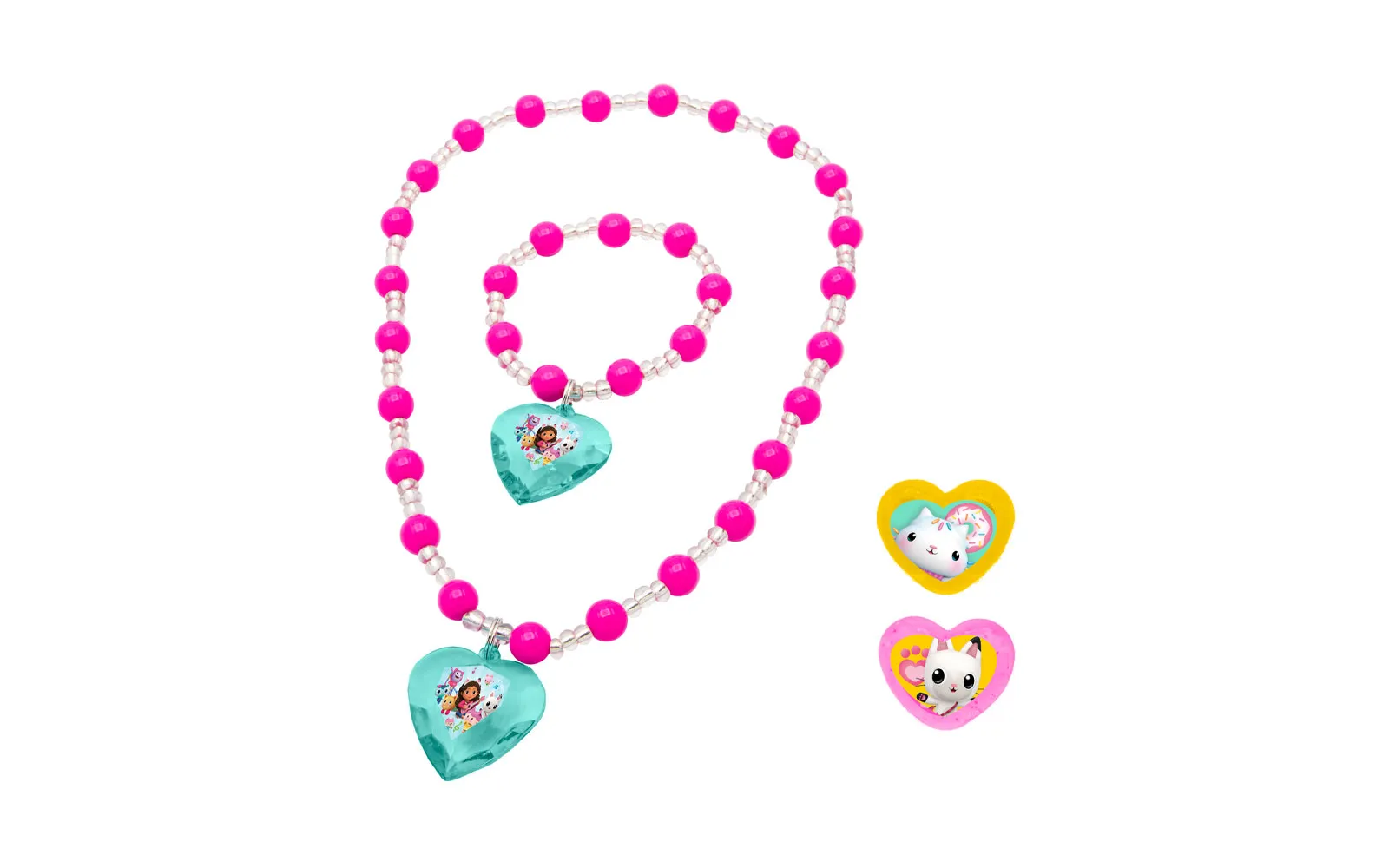 Predivan set nakita očarat će vašu malu princezu. Set sadrži 1 biserne ogrlice, 1 biserne narukvice, 2 naušnice, koje nose sličice junaka iz Gabby's dollhouse, a sve je spremljeno u prekrasnoj poklon kutiji.