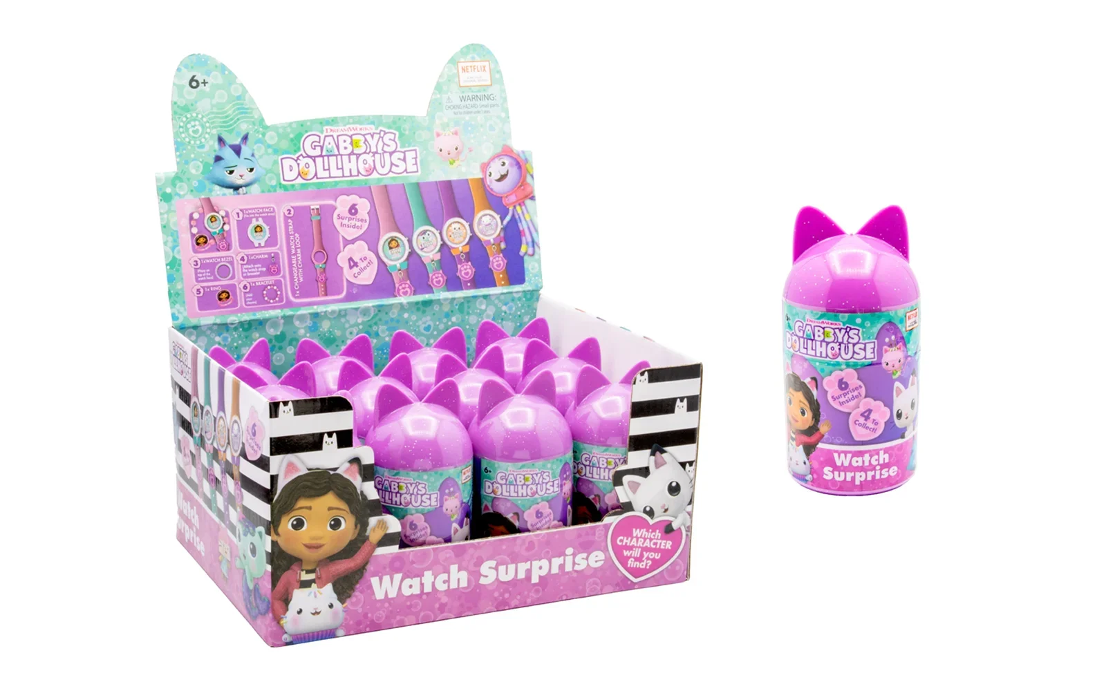 Otkrijte magičnu zabavu s Gabbyjinom kapsulom iznenađenja s satu iz popularne serije Gabbyjina kuća za lutke. U svakoj kapsuli skriva se jedan od četiri digitalna sata koji kombiniraju razigrani dizajn s upotrebnošću, a uz to dobivate i modni prsten i narukvicu, s kojima možete kreirati jedinstven stil. Zamjenjivi remen, brojčanik, okvir sata i privjesak omogućuju prilagodbu izgleda, tako da svako dijete može stvoriti svoj sanjski sat. Igračka je namijenjena djeci od 6. godine nadalje, a kapsula je također izvrsan kolekcionarski predmet jer vas čekaju čak četiri različite mogućnosti. Savršen poklon za male modne entuzijaste i sve obožavatelje Gabbyjine kuće za lutke.