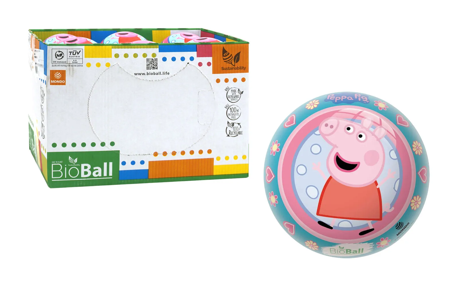 Bila je lopta veličine FI 140 mm s motivom popularne crtane junakinje svinje Peppa. Lopta je napravljena prema ekološki prijateljskoj formuli koja zamjenjuje 50% fosilnih derivata s obnovljivim biljnim derivatima. Novi materijal je znatno prijateljskiji prema okolišu i omogućava bolje recikliranje i ponovnu proizvodnju igračaka.