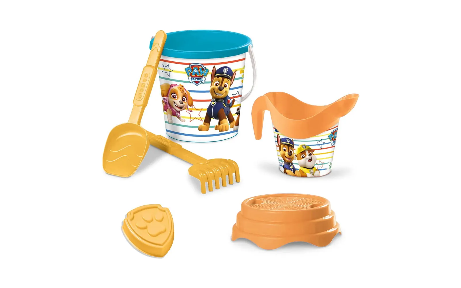 U pješčaniku nikako ne smije nedostajati set za igru koji sadrži kanticu promjera FI17 cm s motivom Paw patrol, manju kanticu zalijevku, sito, lopaticu, grabljice i lik za otisak. Dodaj još malo vode za nezaboravno iskustvo.