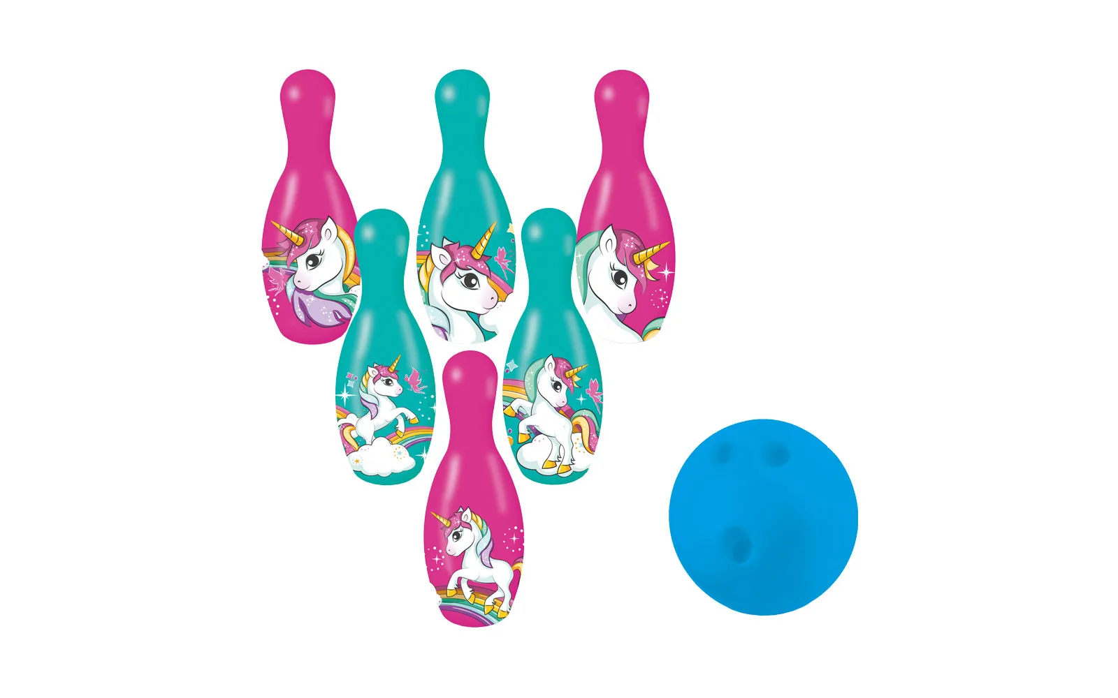Set šest kugli s motivima jednoroga i jednu lopticu. Igre s kuglama su uvijek zabavne i društvene. Kugla je visoka 18 cm.