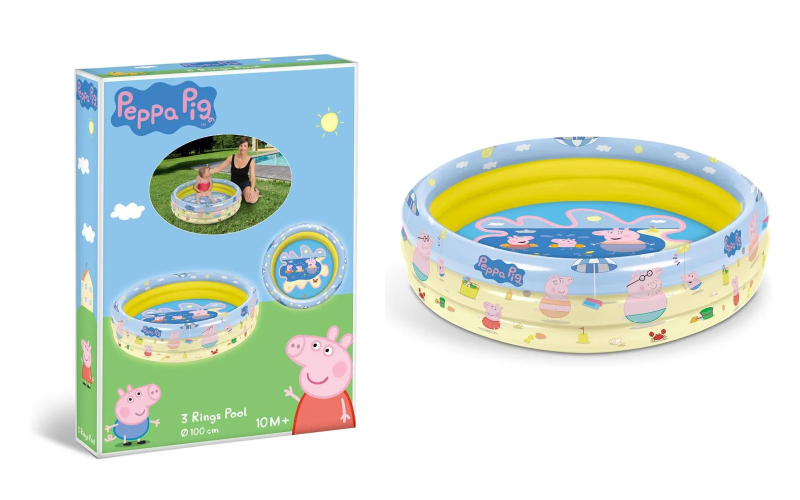 Simpatičan bazen s motivom praščića Pepa je odličan za osvježenje u vrućim ljetnim danima. Ima promjer od 100 cm i 3 obruča u boji. Razveseliti će vašu dječicu.