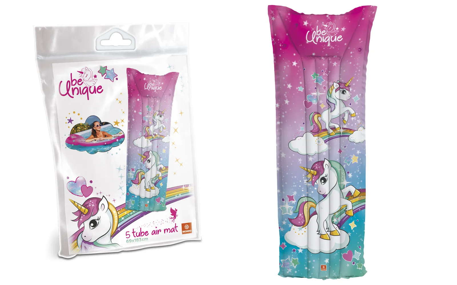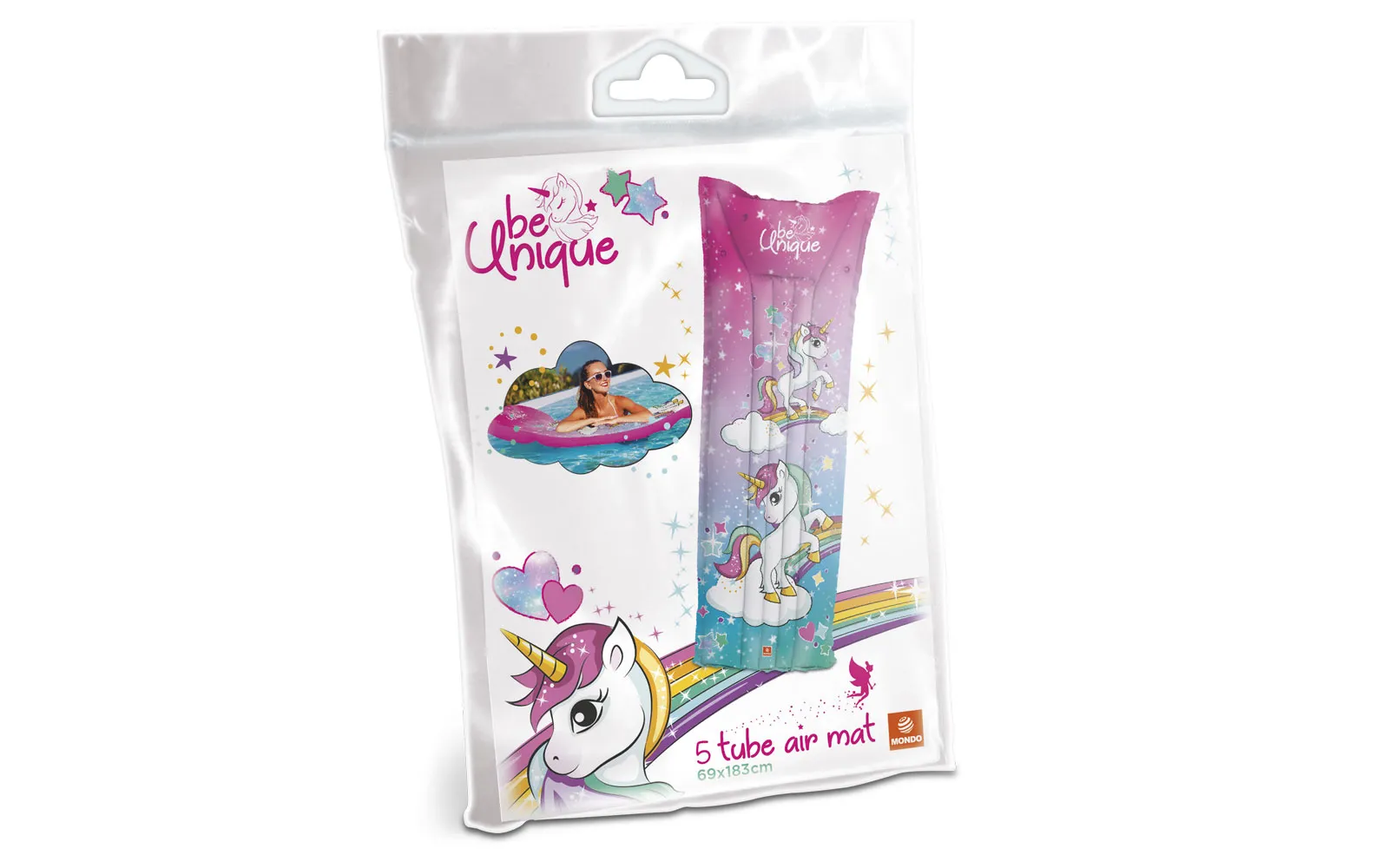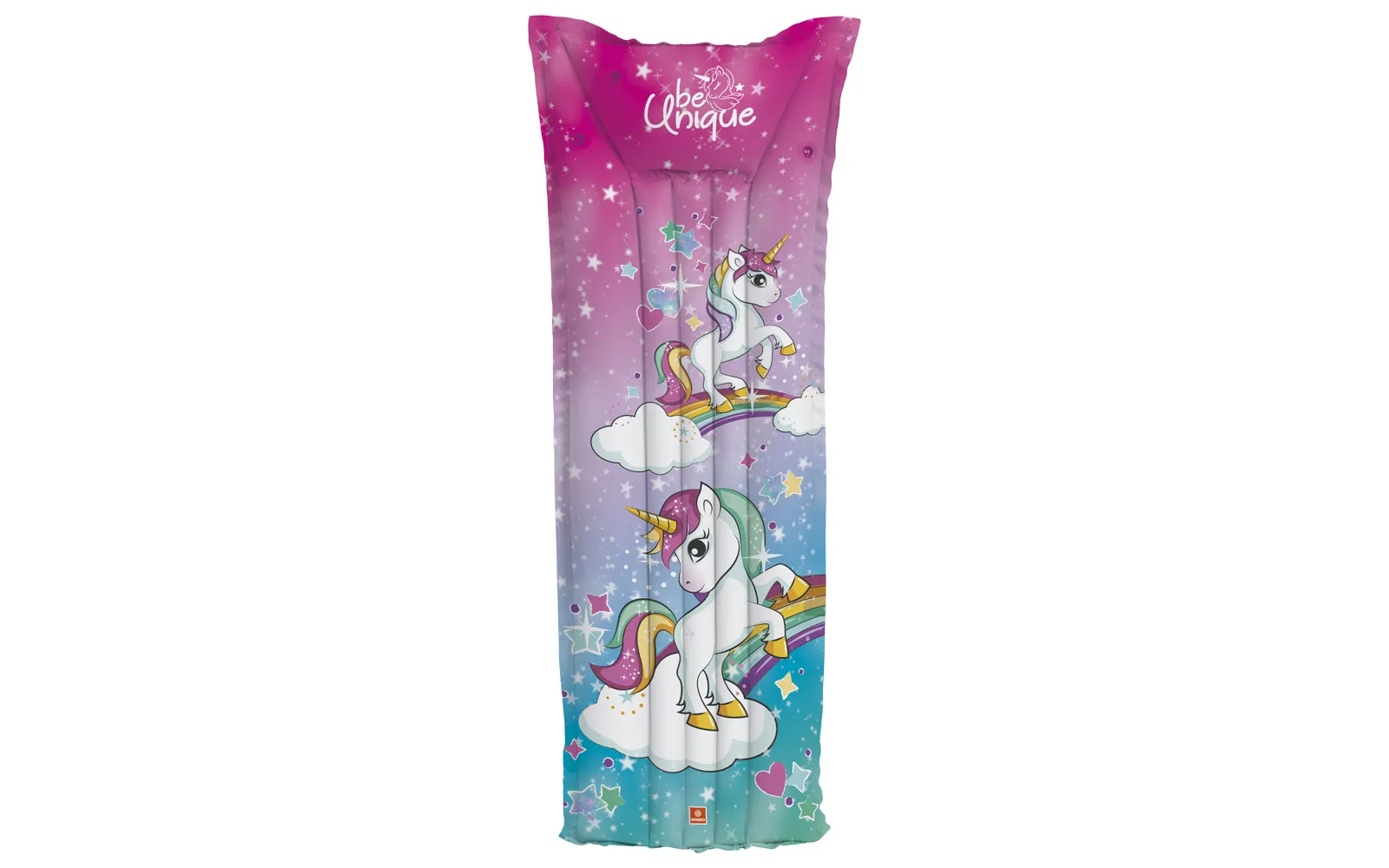 Naduvljivi jastuk Jednorog veličine 69 x 183 cm s 3 zračne komore za maksimalnu sigurnost. Maksimalna nosivost je 80 kg.