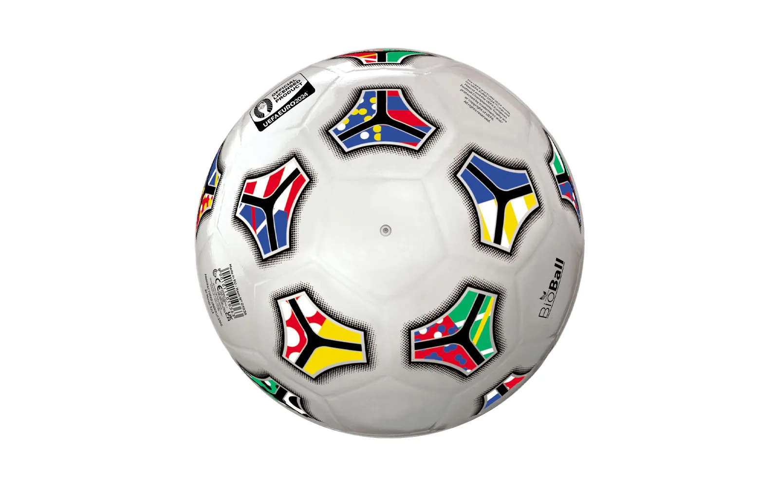 Nogometna lopta BIO EURO Classic 2024 s promjerom 230 mm. Lopta je izrađena prema formuli prihvatljivoj za okoliš, koja zamjenjuje 50% fosilnih derivata obnovljivim biljnim derivatima. Novi materijal je puno prijateljskiji prema okolišu i omogućava bolje recikliranje i ponovnu proizvodnju igračaka.