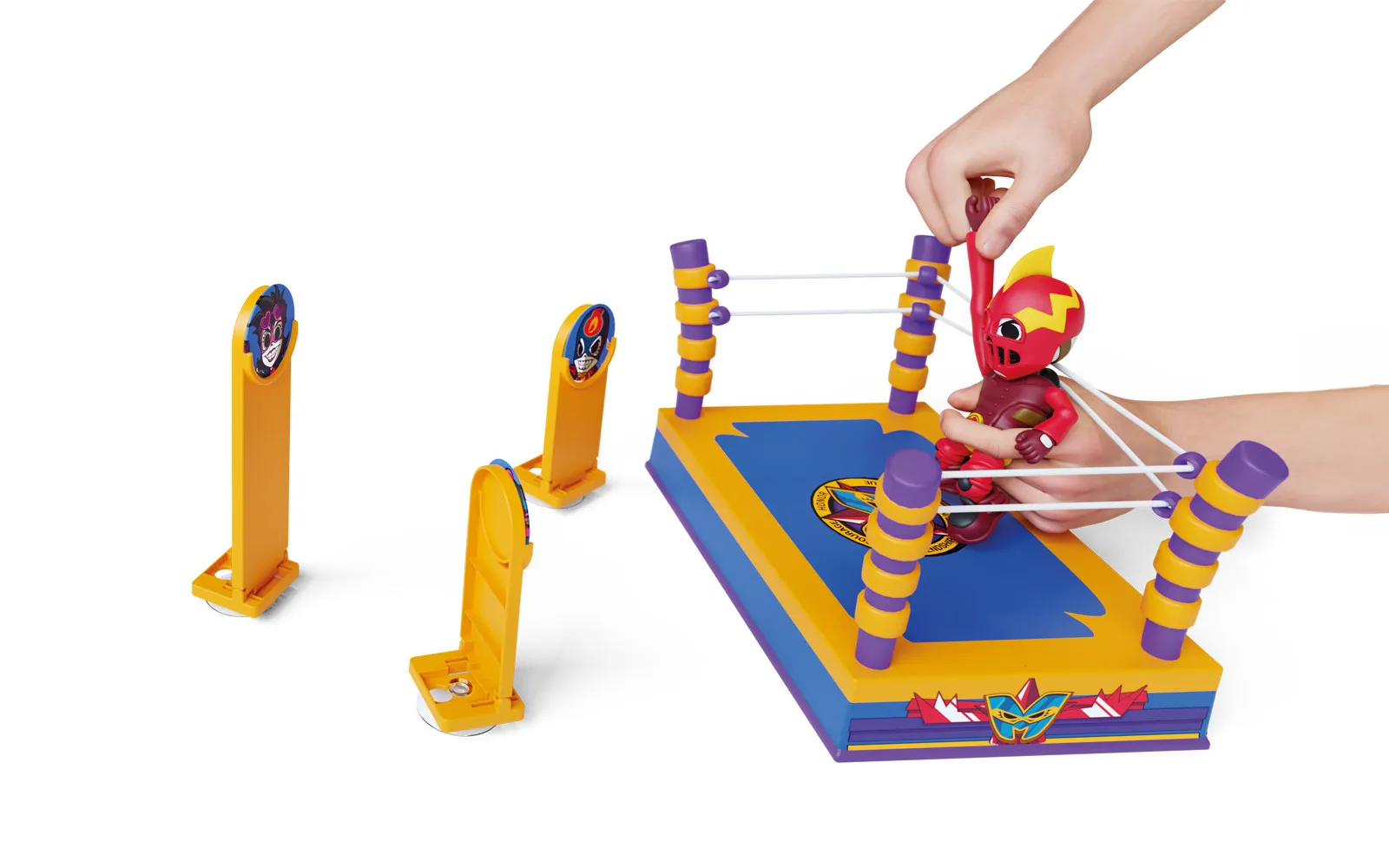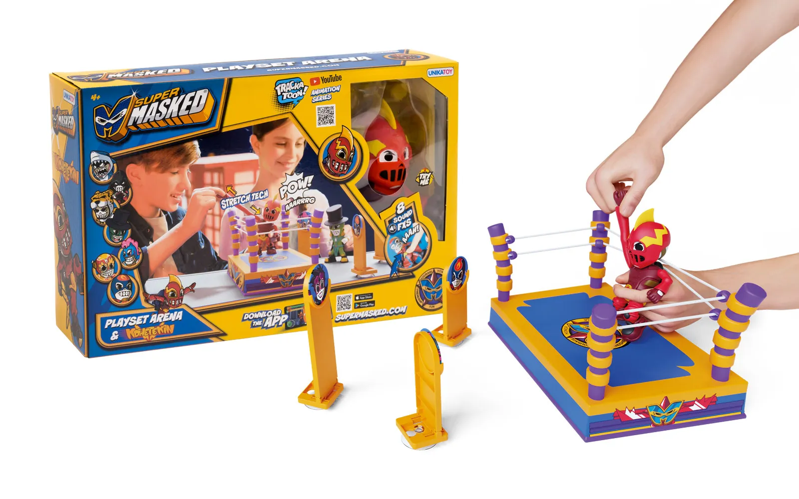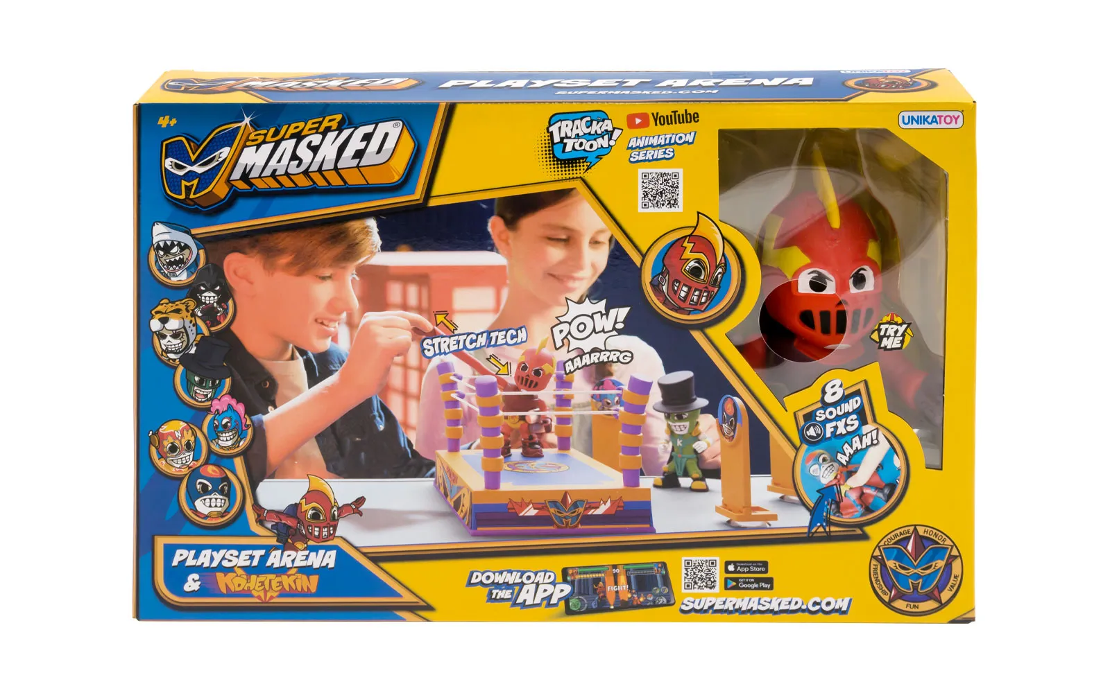 Super Mask igračke su rastezljive figure sa zvučnim efektima. Kada ih rastegnete ili kliknete na njih, otkrijete njihove trikove i super moći. U Super Mask Training Range-u - Areni možete pogoditi mete postavljene pred figure, kao i organizirati natjecanja s drugim superherojima iz svemira Super Mask. Igranje s ovom igračkom razvija dječju maštu i smanjuje stres i tjeskobu. Pogodno za djecu od 4 godine i više.