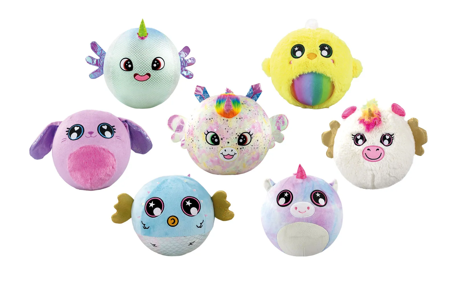 Lopte Bounce Fantasy, Lit'l Biggie Bouncerz, Unikatoy su meke, zabavne i savršene za igru i za grljenje! Dostupni su u prekrasnim motivima, kao što su: različiti jednorozi, piletina, zec, napuhana riba i aksolotl.