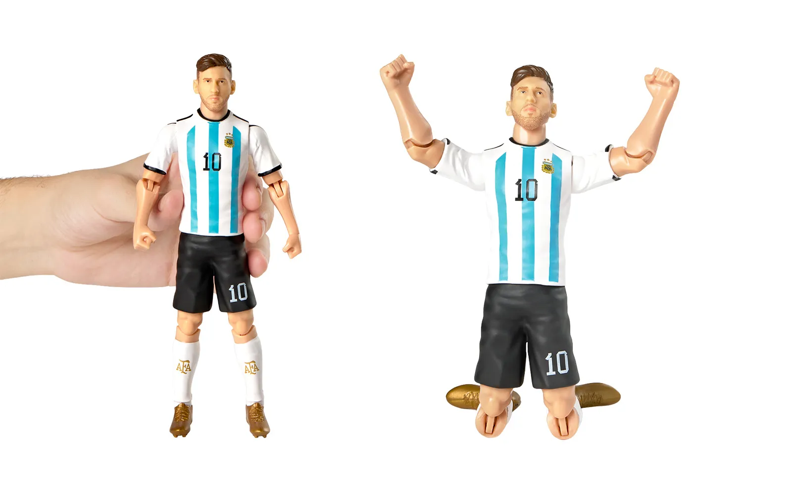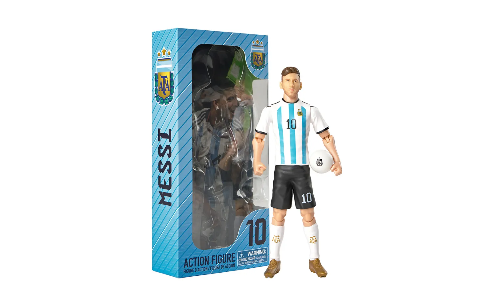Nogometna figura, Messi, 20 cm. Otkrijte autentičnu figuru popularnog nogometaša Messija. Figura je visoko kvalitetne izrade, ima pokretne udove, nosi broj kluba i dolazi s priloženom nogometnom loptom.