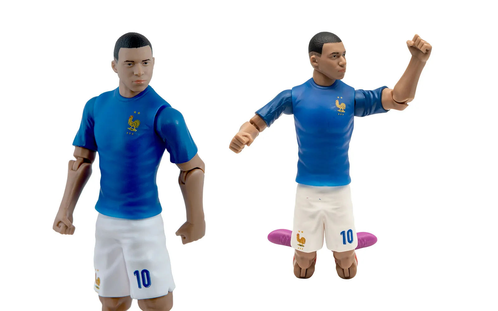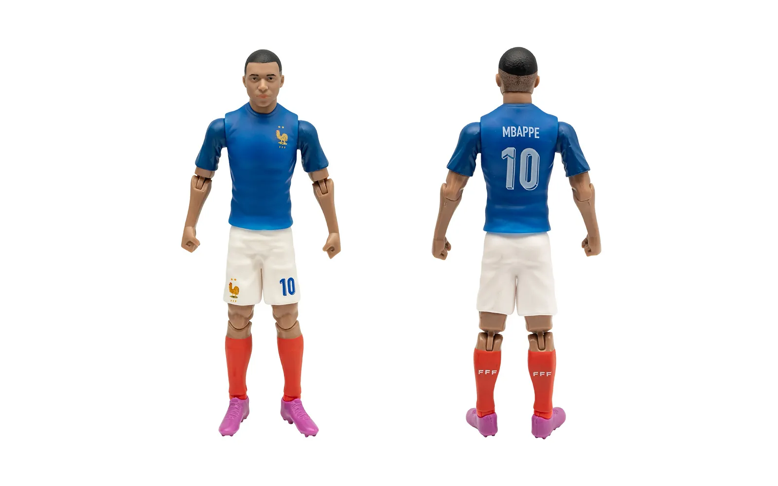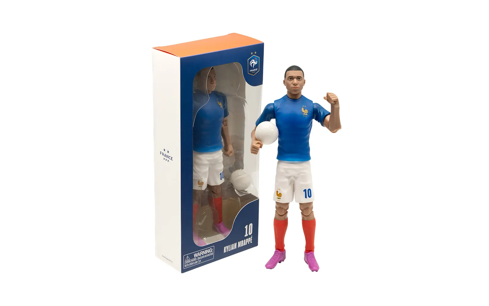 Nogometna figura, MBappe, 20 cm. Otkrijte autentičnu figuru popularnog nogometaša MBappe. Figura je visokokvalitetno izrađena, ima pokretne udove, nosi broj kluba i dolazi s priloženom nogometnom loptom.
