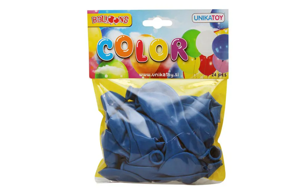 U vrećici je 24 plavih balona. Napuhaj balone, koristi ih za dekoraciju na zabavi ili se jednostavno igraj s njima.