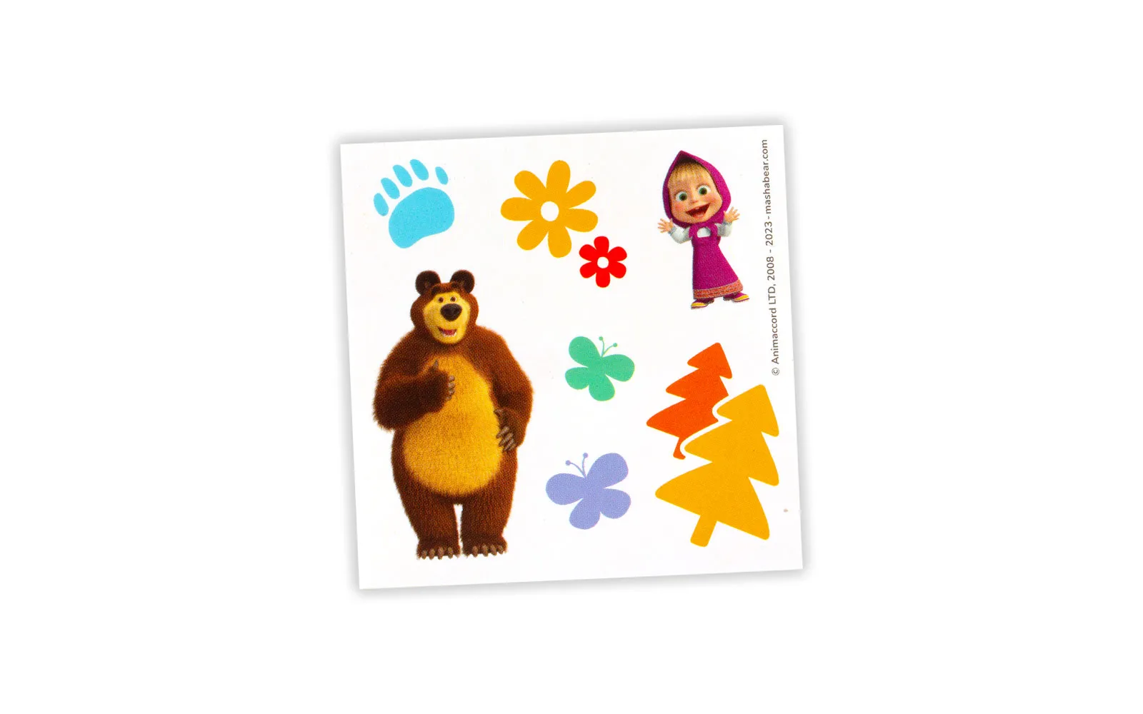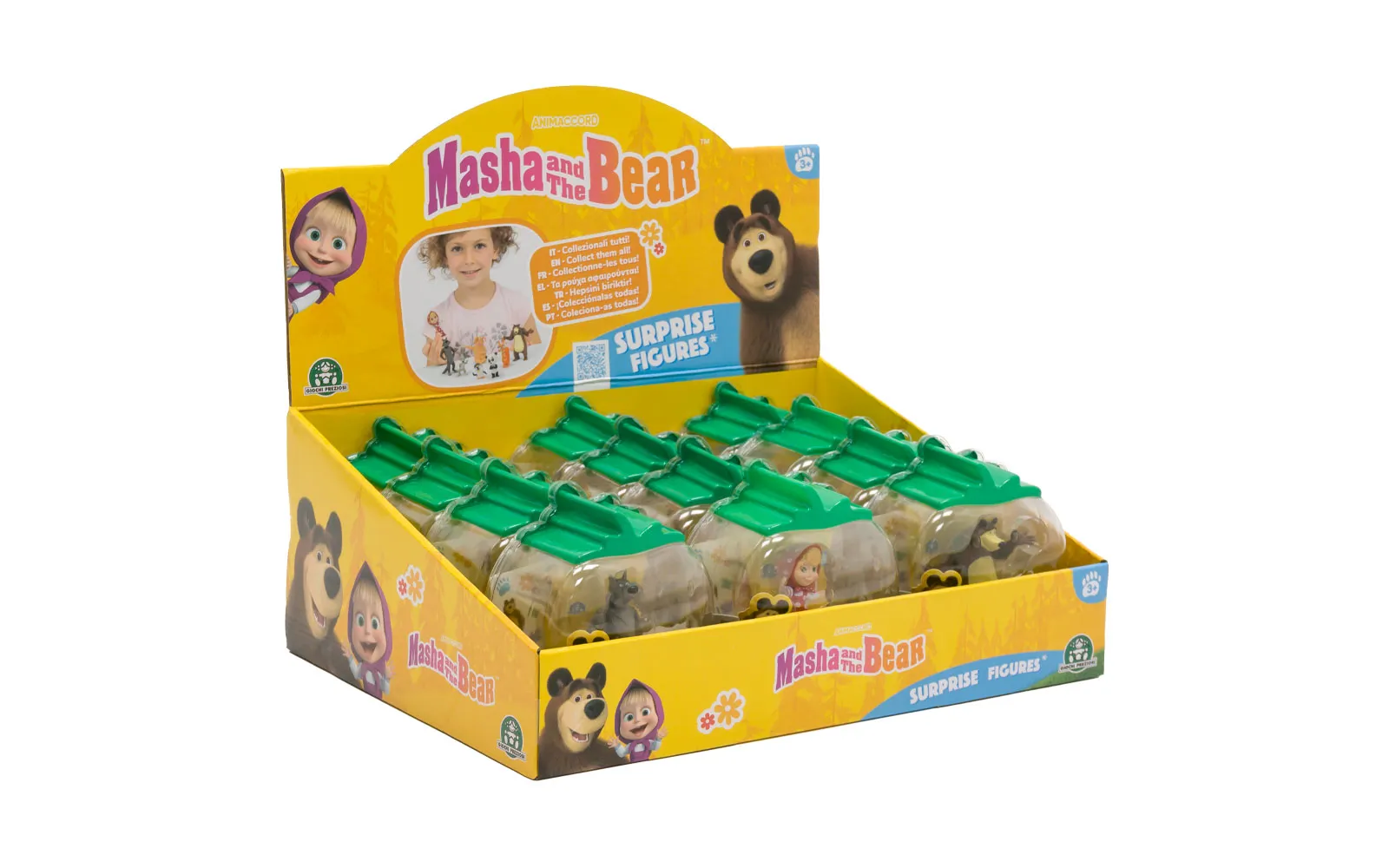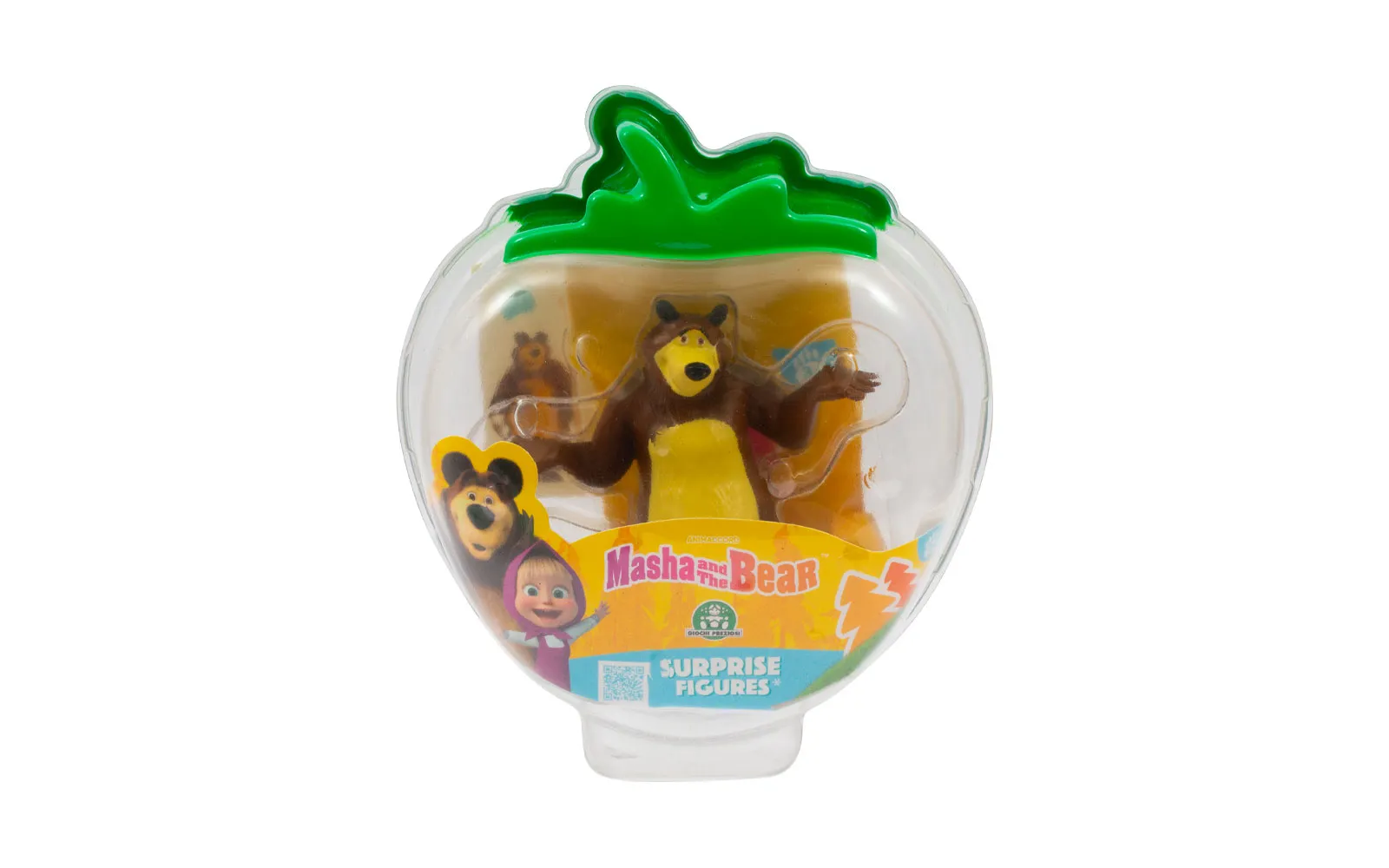 Prozirna kutijica sadrži lika popularne animirane serije Maša i Medvjed i vrećicu iznenađenja u kojoj se skriva Mašin prijatelj. Set također sadrži simpatične naljepnice likova. Popularna animirana serija Maša i Medvjed osvaja srca djece diljem svijeta.