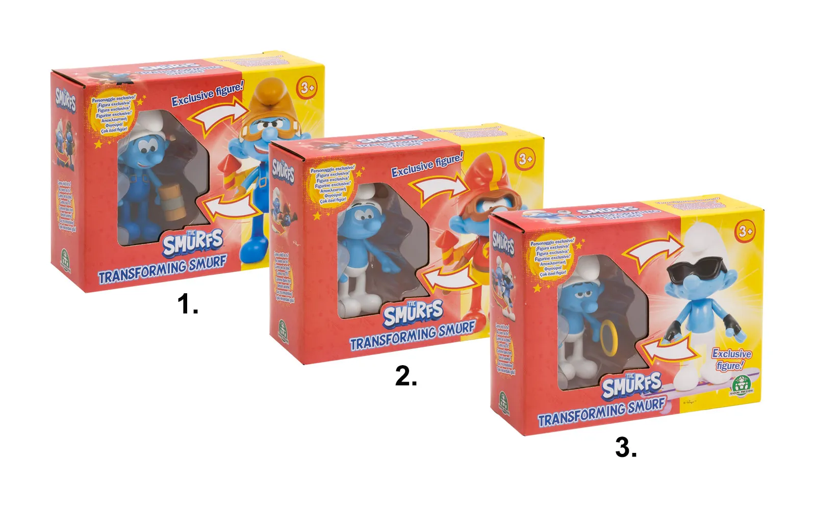 Prekrasne figurice Štrumpfova koje se uz dodatnu opremu pretvaraju u SUPER ŠTRUMPOVE! Figurica je visoka 10 cm, dostupne su 3 različite likove, svaki Štrumpf se pretvara u svog alter-ega. Recimo, Štrumpf pod imenom Lukavi se pretvara u letećeg Štrumpfa!