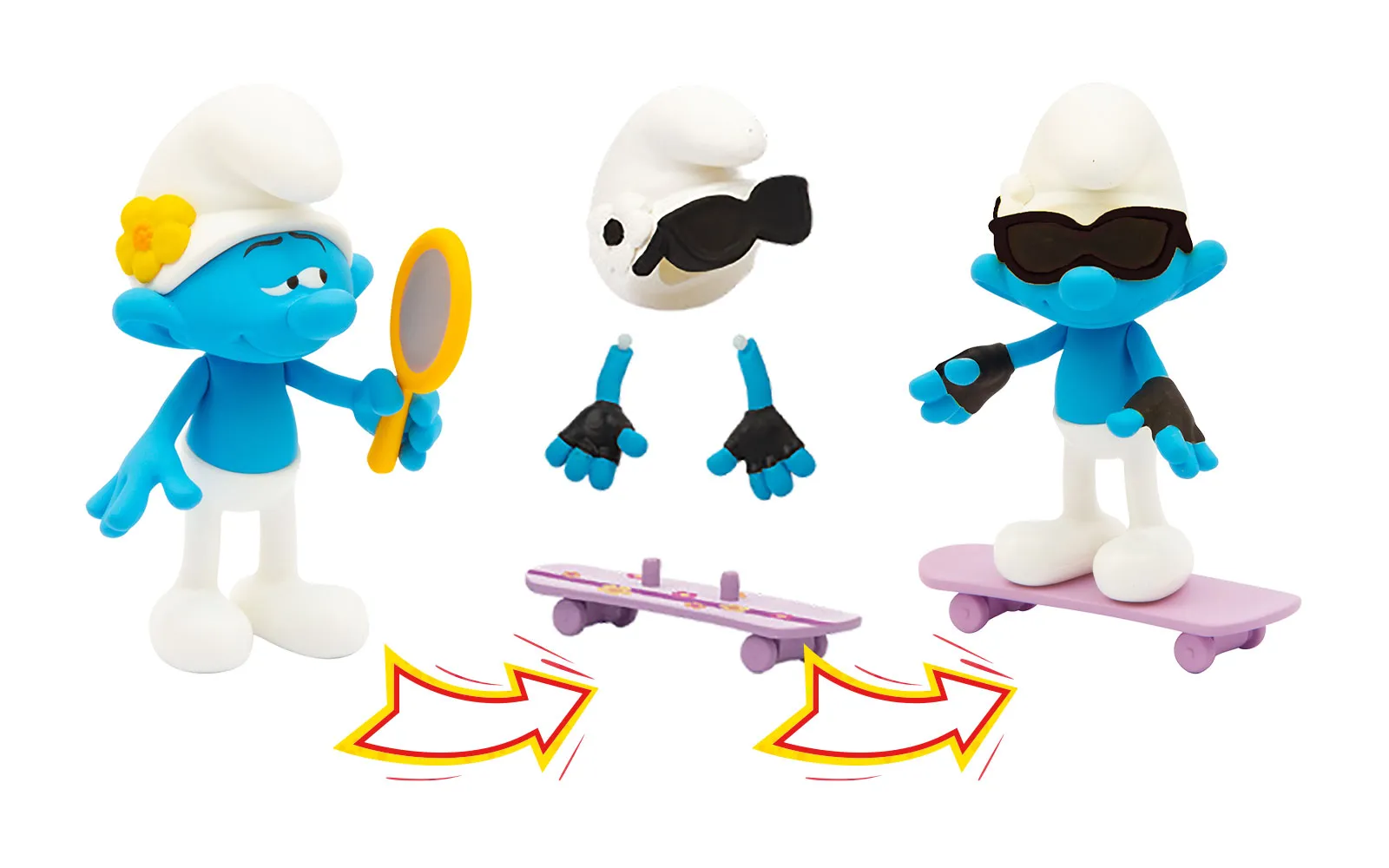 Predivne figurice Štrumpfova, koje se s dodatnom opremom pretvaraju u SUPER ŠTRUMPOVE! Figurica je visoka 10 cm, na raspolaganju su 3 različita lika, svaki Štrumpf se pretvara u svoj alter-ego. Recimo, Štrumpf s imenom Zviti se pretvara u letećeg Štrumpfa!