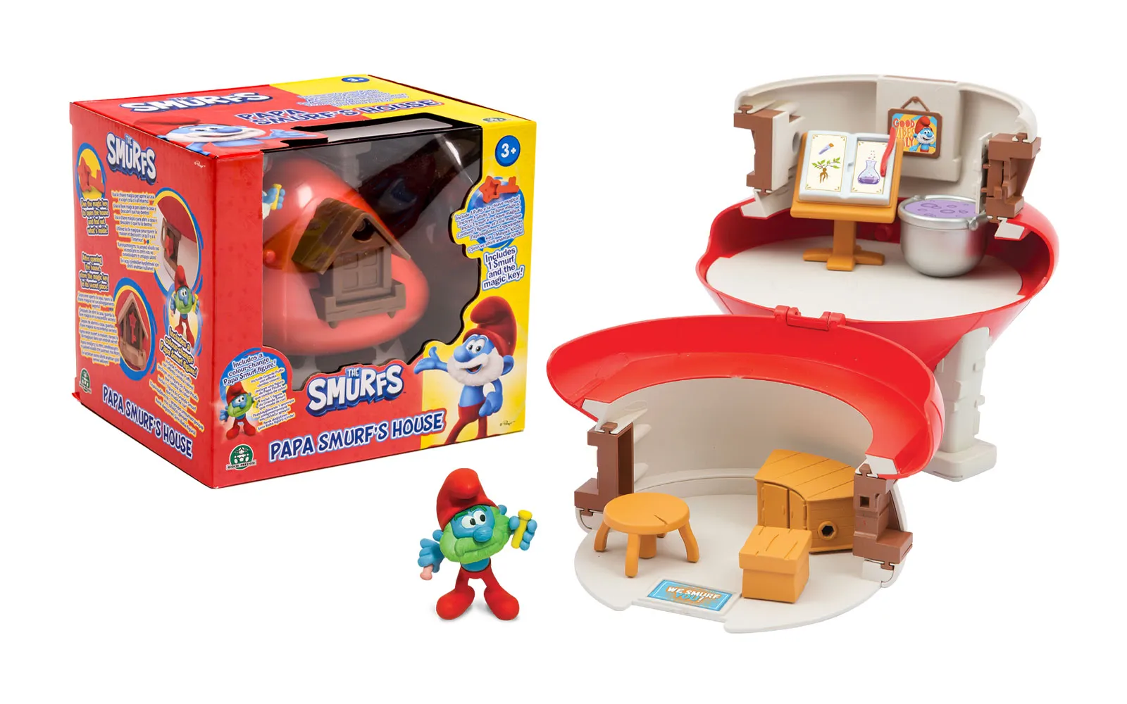 Magična kućica Tata Štrumpf, set, Štrumpfovi. Kućica ima skriveni čarobni ključ. Set uključuje figuricu Tate Štrumpfa, ključ za otvaranje kućice i dodatnu opremu. Čarobni svijet za male obožavatelje animirane serije Štrumpfovi.