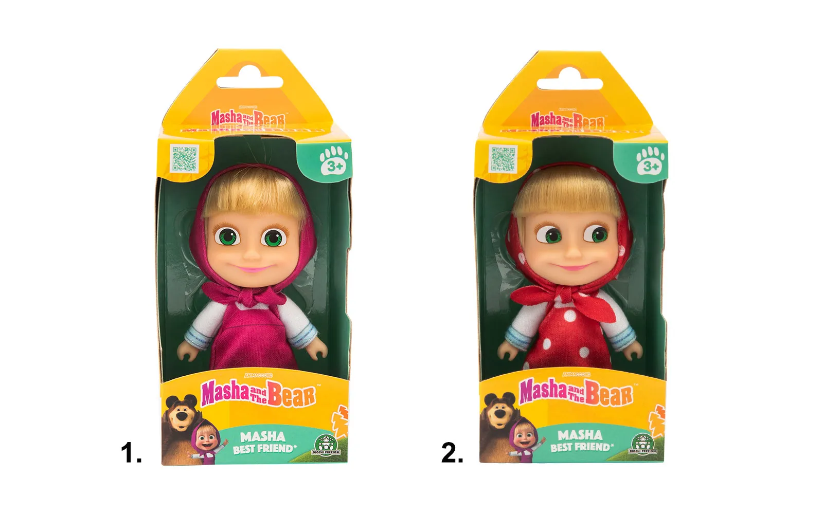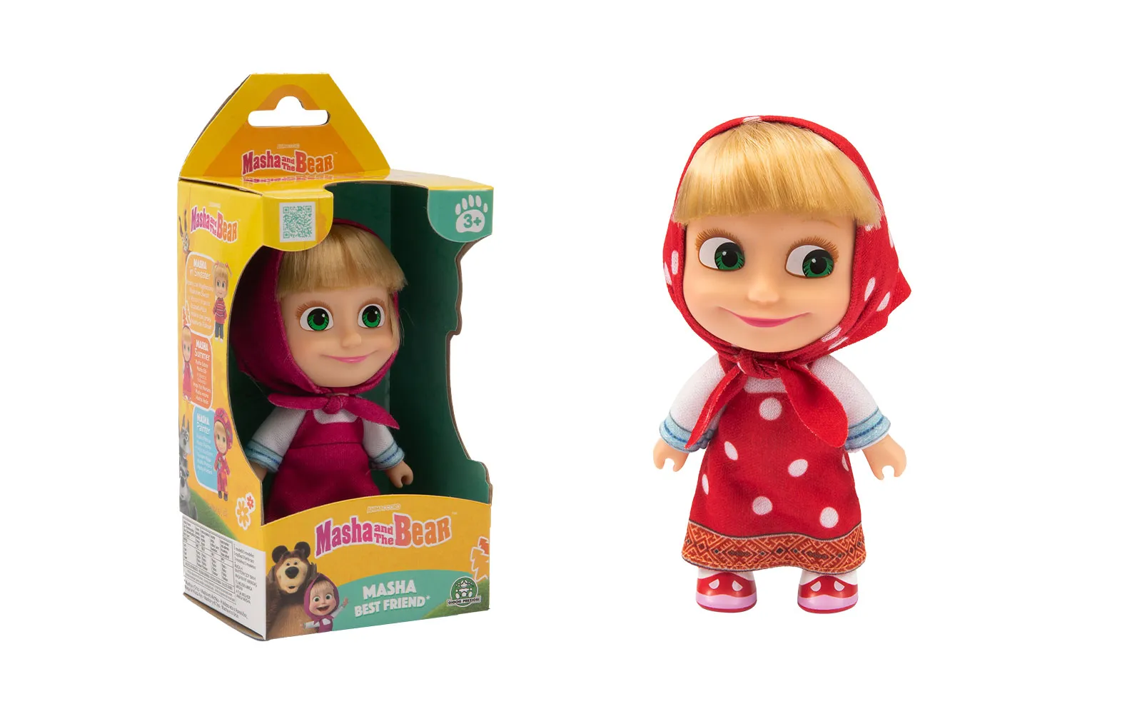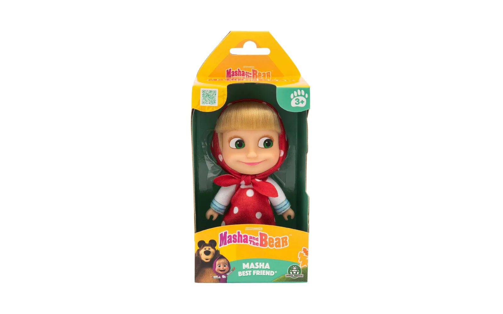 Popularna animirana serija Maša i Medvjed osvaja srca djece širom svijeta. Figurica lutke Maše, popularne junakinje iz animirane serije Maša i Medvjed. Lutka ima predivne kovrče i je velićine 12 cm.