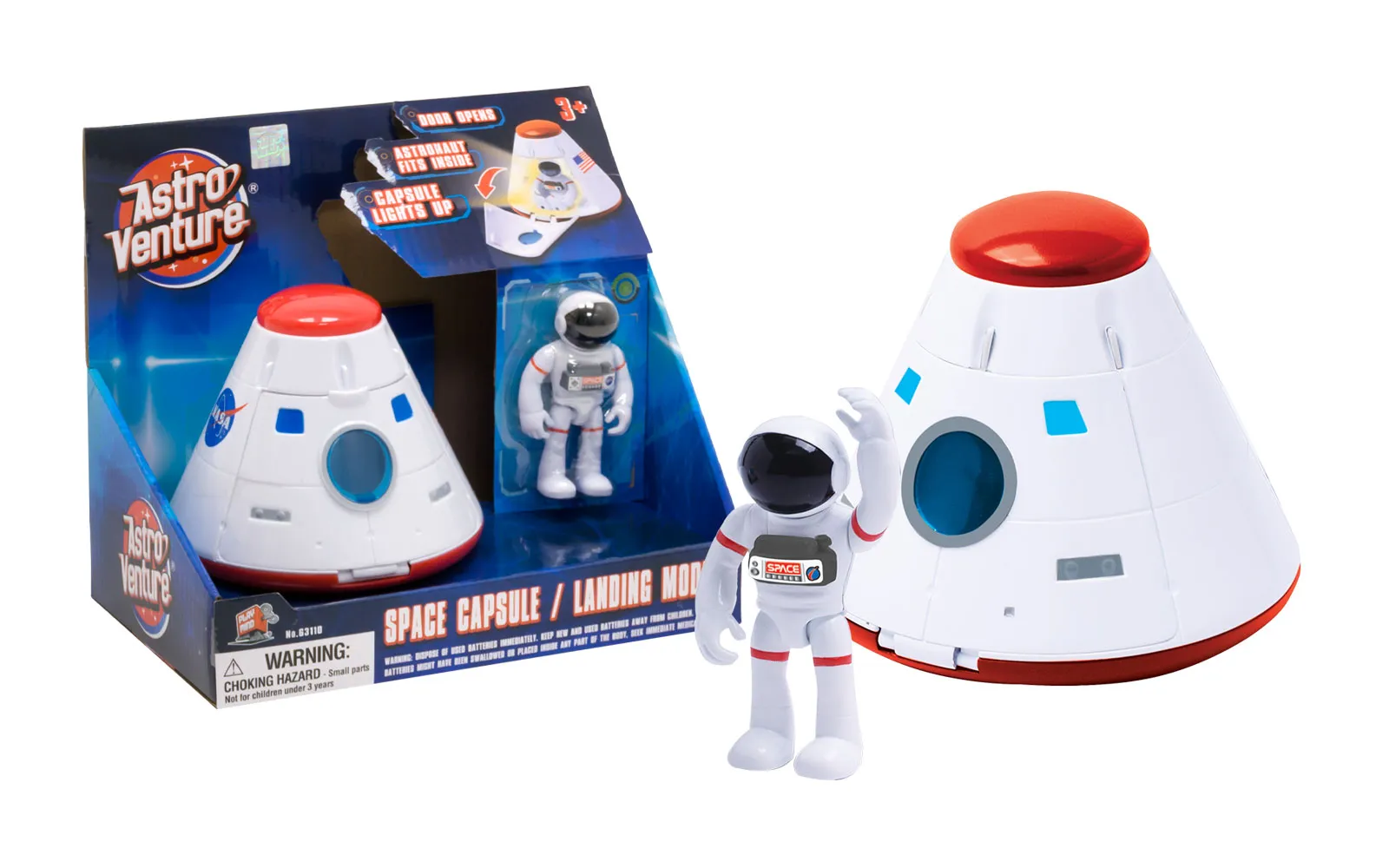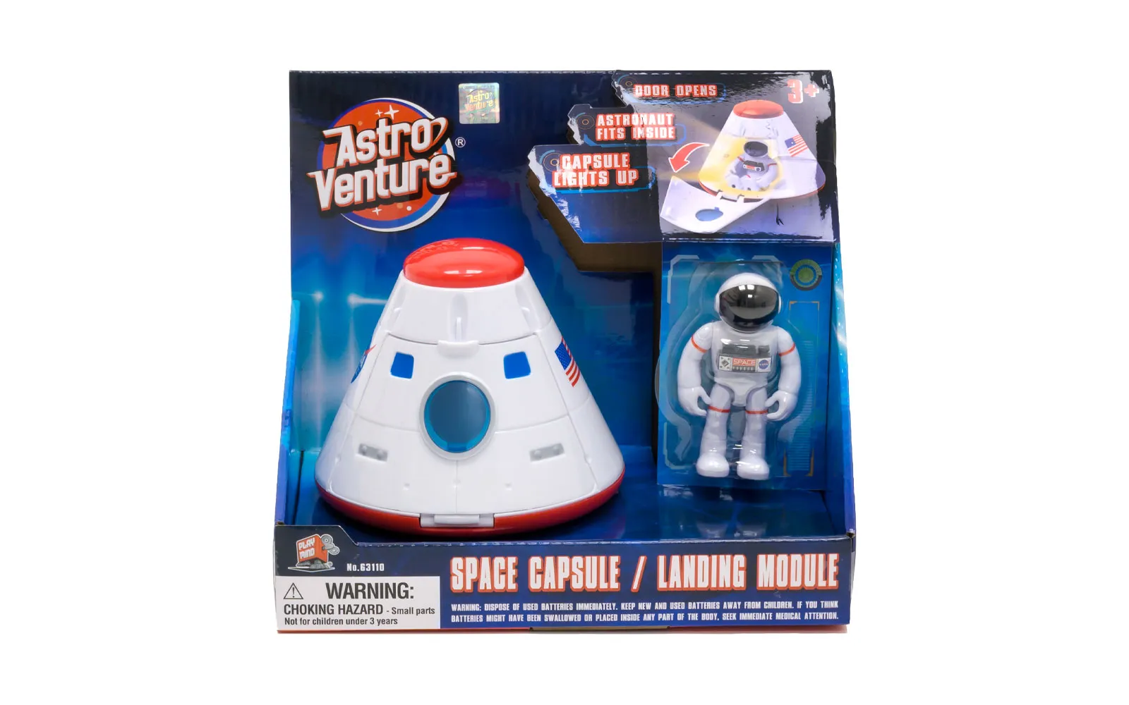Svemirska kapsula, Astro Venture je galaktička igračka koja potiče maštu i širi horizonte. Set uključuje kapsulu i astronauta. Vrata kapsule se otvaraju te omogućuju prostor za smještaj astronauta. Kapsula ima svjetlosne efekte te se može postaviti na igraći set velike svemirske stanice, koja se prodaje odvojeno. Artikl radi na baterije tipa 2x1.5v AG13 koje su priložene.