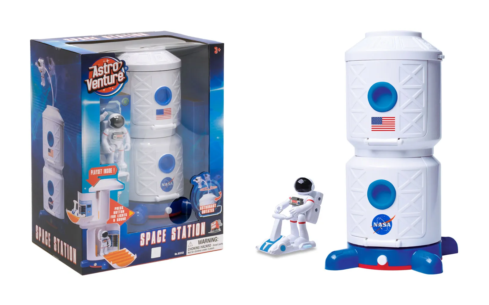 Svemirska postaja, Astro Venture je galaktička igračka koja potiče maštu i širi vidike. Set sadrži postaju, astronauta, svemirski rover, ruksak, privez i napojni kabel. Astronautu namestite priloženi ruksak i zaputite se u pravu svemirsku avanturu, otkrijte mogućnosti astronautove hodanja po svemiru, a čak i lebdenja, pri tome ne zaboravite i na unutrašnjost svemirske postaje - to je zapravo pravi igrački set. Svemirska postaja ima 2 kontrolne sobe i još mnogo toga. Postaja ima zvučne i svjetlosne efekte, jer radi na baterije tipa 2 x AA, koje su priložene.
