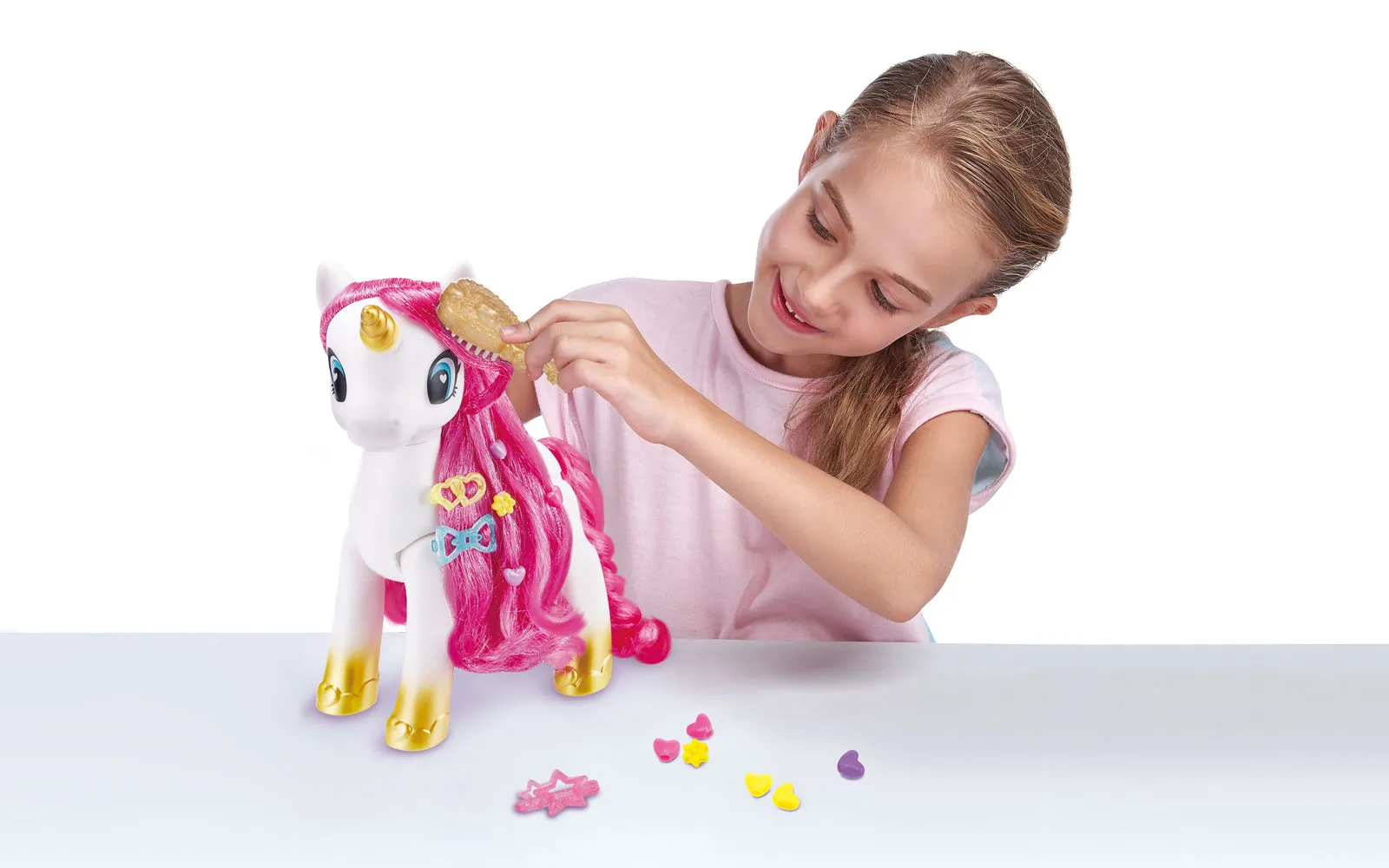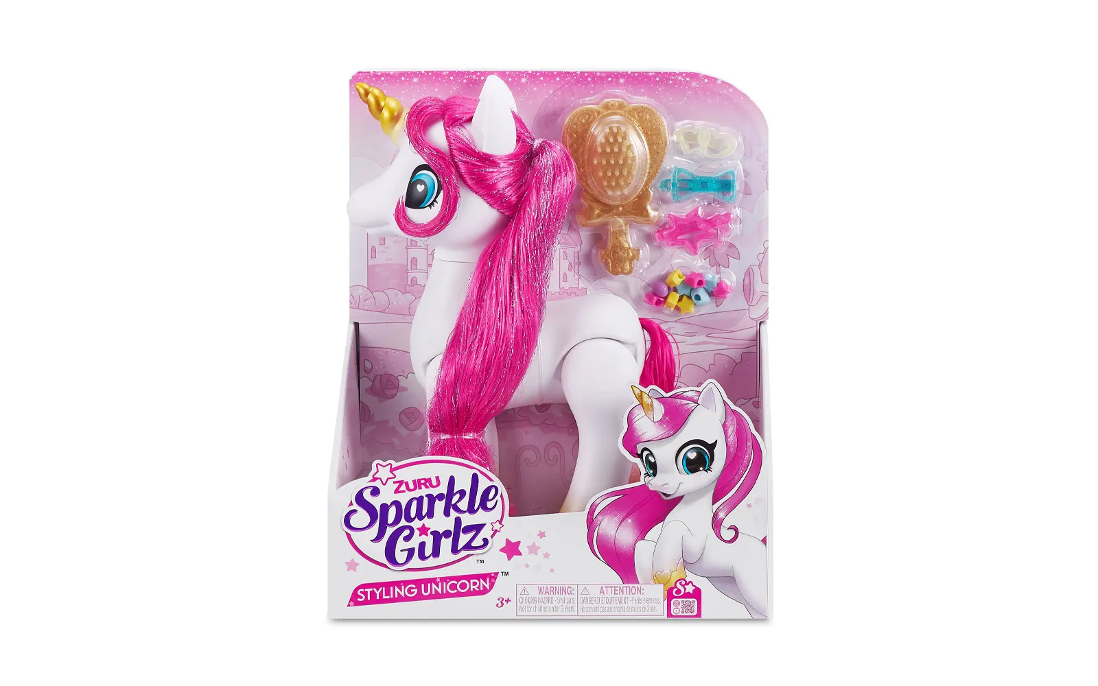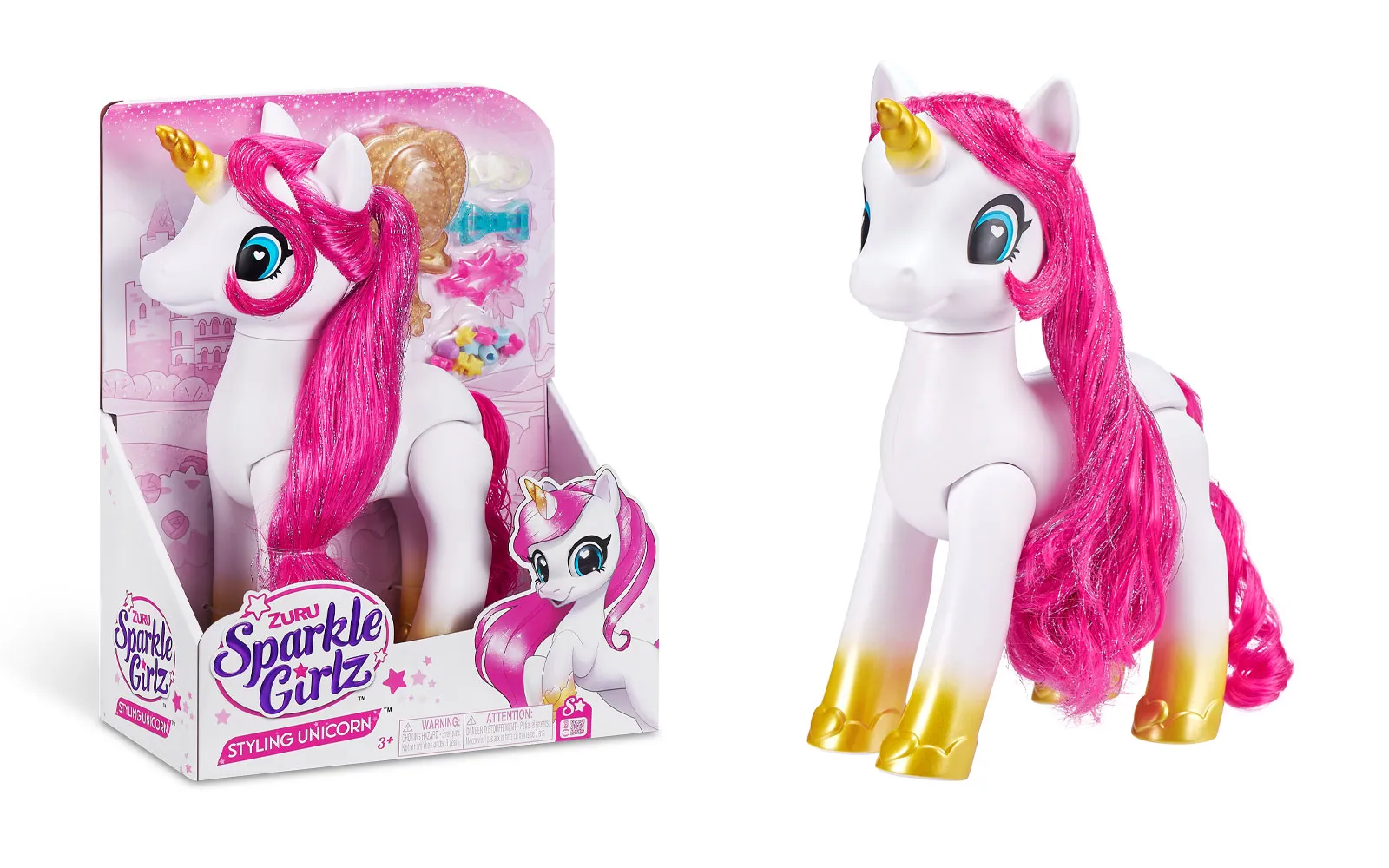 Jednorog Sparkle Girlz je vjeran prijatelj Sparkle Girlz lutkama i štiti ih u svim avanturama. Ima prekrasne velike oči, mekanu i šarenu grivu, pokretnu glavu te čarobne detalje na rogu i kopitima. Griva je pogodna za oblikovanje četkom, pri čemu će se vaša djevojčica neizmjerno zabaviti! Set jednoroga sadrži četku i puno čarobnih ukrasa za oblikovanje kose - 10 kuglica i 3 kopče.